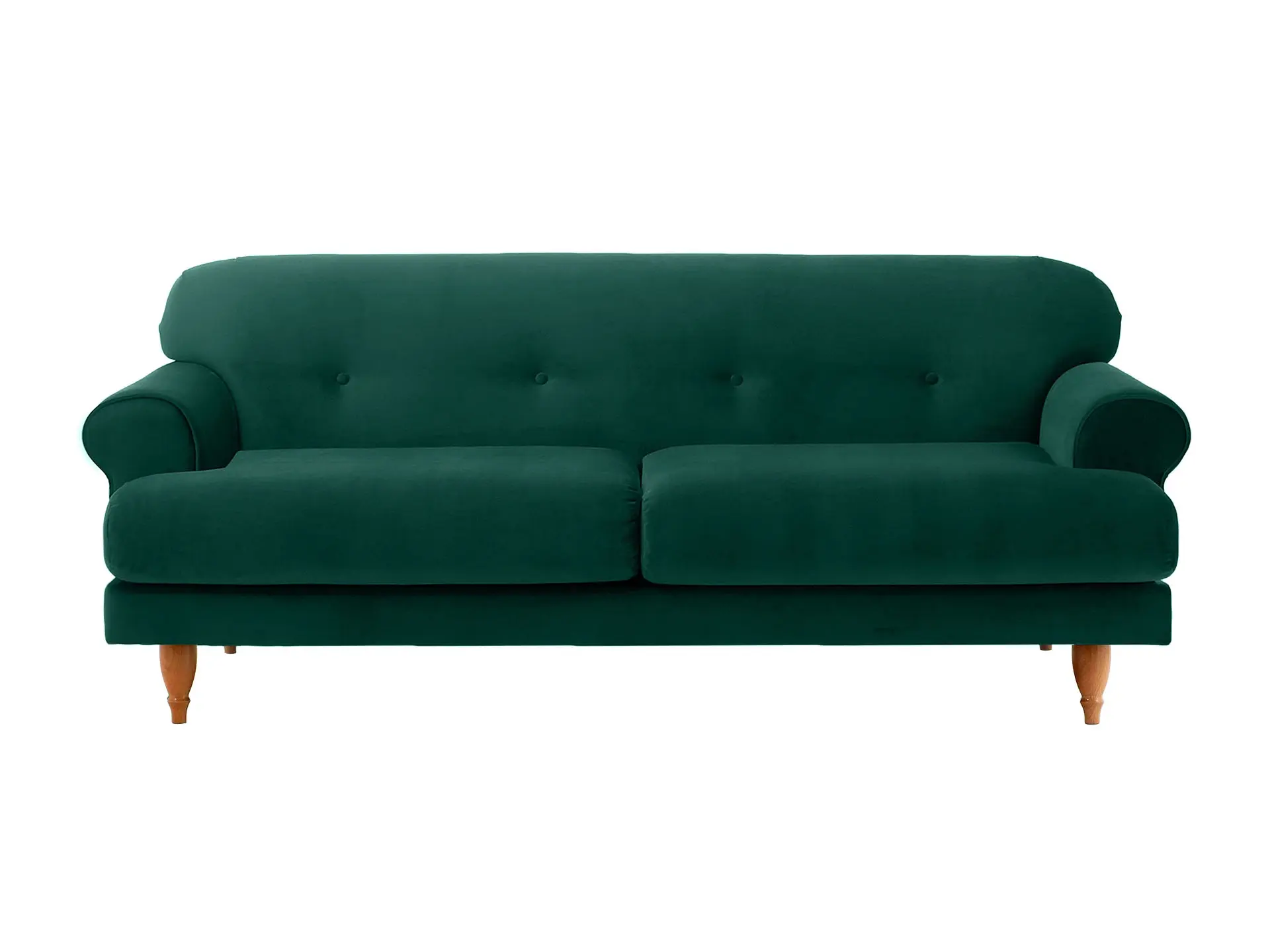 Трехместный диван Italia на ножках из натурального бука - модель классического европейского дизайна. Прямоугольное сиденье, образованное двумя подушками, обеспечивает комфортную посадку. Спинка с закругленными краями делает изделие гармоничным и плавным. Деревянные круглые ножки с фигурной обработкой создают ощущение невесомости и легкости, диван словно «парит» в пространстве. Невысокие подлокотники закруглены наружу, изюминку их формы по достоинству можно оценить при отдыхе лежа. Спинка украшена пуговицами стяжек – черта стилистики ретро.|Сочетание в каркасе деревянного бруса еловых пород с МДФ обеспечивает прочность и основательность. В меру мягкие, эластичные и износоустойчивые наполнители спинки и подушек сиденья – пенополиуретан и синтепон отвечают за качество вашего отдыха в любом положении. Широкий выбор материала обивки по цвету и фактуре. Italia – лаконичный диван с особенной эстетикой. Недаром он носит название страны, которая ассоциируется с искусством, культурой и утонченностью. В зависимости от стиля интерьера и декора диван Italia может выглядеть романтично, строго или изысканно.