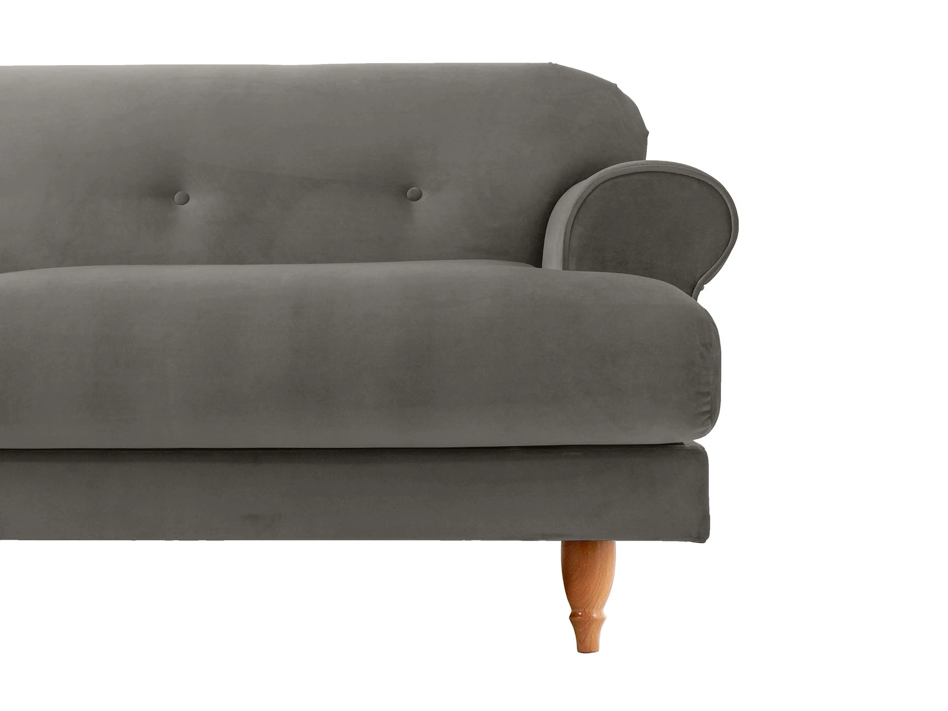 Трехместный диван Italia на ножках из натурального бука - модель классического европейского дизайна. Прямоугольное сиденье, образованное двумя подушками, обеспечивает комфортную посадку. Спинка с закругленными краями делает изделие гармоничным и плавным. Деревянные круглые ножки с фигурной обработкой создают ощущение невесомости и легкости, диван словно «парит» в пространстве. Невысокие подлокотники закруглены наружу, изюминку их формы по достоинству можно оценить при отдыхе лежа. Спинка украшена пуговицами стяжек – черта стилистики ретро.|Сочетание в каркасе деревянного бруса еловых пород с МДФ обеспечивает прочность и основательность. В меру мягкие, эластичные и износоустойчивые наполнители спинки и подушек сиденья – пенополиуретан и синтепон отвечают за качество вашего отдыха в любом положении. Широкий выбор материала обивки по цвету и фактуре. Italia – лаконичный диван с особенной эстетикой. Недаром он носит название страны, которая ассоциируется с искусством, культурой и утонченностью. В зависимости от стиля интерьера и декора диван Italia может выглядеть романтично, строго или изысканно.