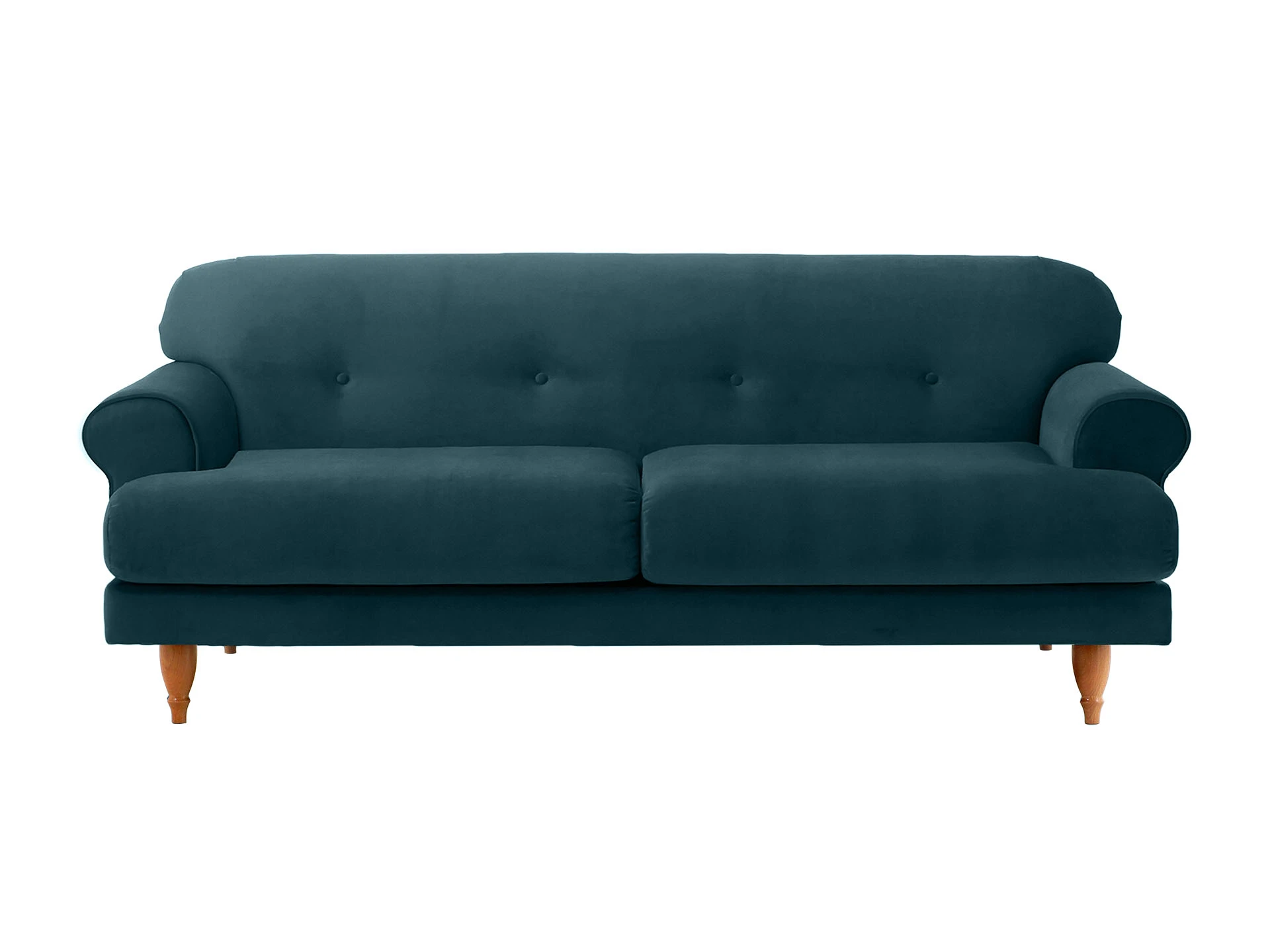 Трехместный диван Italia на ножках из натурального бука - модель классического европейского дизайна. Прямоугольное сиденье, образованное двумя подушками, обеспечивает комфортную посадку. Спинка с закругленными краями делает изделие гармоничным и плавным. Деревянные круглые ножки с фигурной обработкой создают ощущение невесомости и легкости, диван словно «парит» в пространстве. Невысокие подлокотники закруглены наружу, изюминку их формы по достоинству можно оценить при отдыхе лежа. Спинка украшена пуговицами стяжек – черта стилистики ретро.|Сочетание в каркасе деревянного бруса еловых пород с МДФ обеспечивает прочность и основательность. В меру мягкие, эластичные и износоустойчивые наполнители спинки и подушек сиденья – пенополиуретан и синтепон отвечают за качество вашего отдыха в любом положении. Широкий выбор материала обивки по цвету и фактуре. Italia – лаконичный диван с особенной эстетикой. Недаром он носит название страны, которая ассоциируется с искусством, культурой и утонченностью. В зависимости от стиля интерьера и декора диван Italia может выглядеть романтично, строго или изысканно.