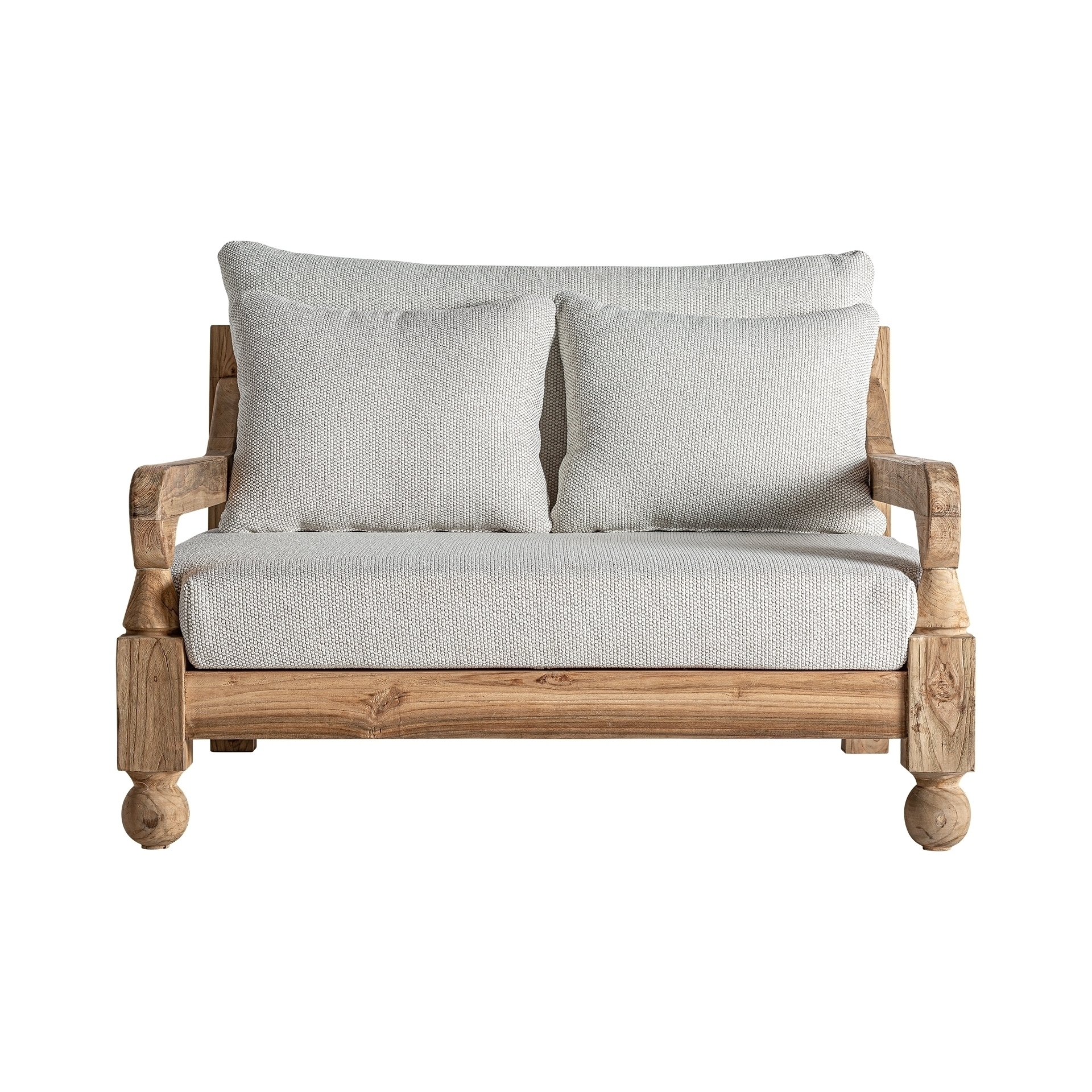 Диван Jodphur натурального коричневого цвета в колониальном стиле. Изготовлен из переработанного тикового дерева в сочетании с переработанным полипропиленом и пеной. Изделие съемное, чехол съемный. Совместим с: 34009,34832.