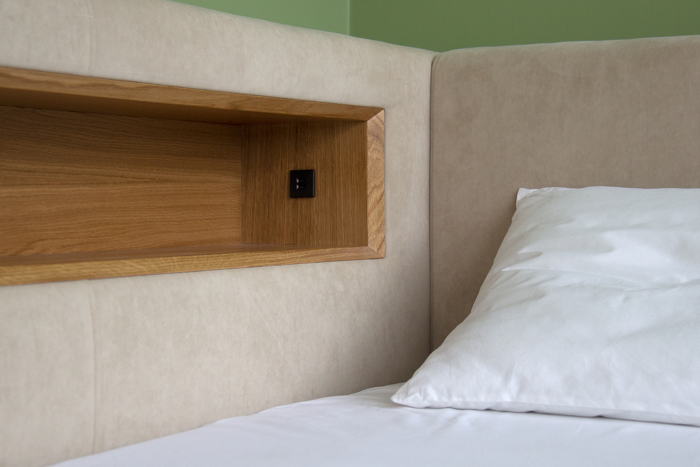 Оснащена подъёмным механизмом, местом для хранения, нишей и розеткой
