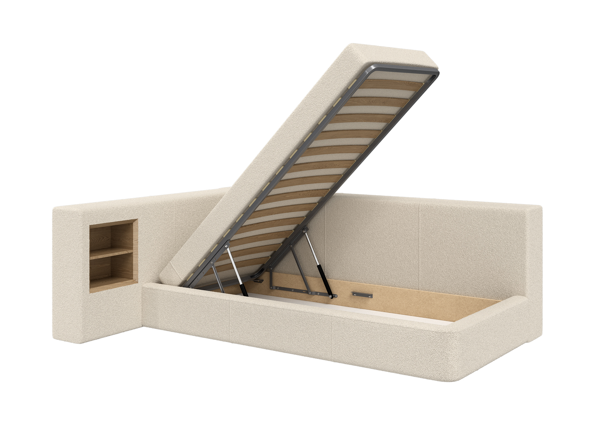 Оснащена подъёмным механизмом, местом для хранения, нишей и розеткой