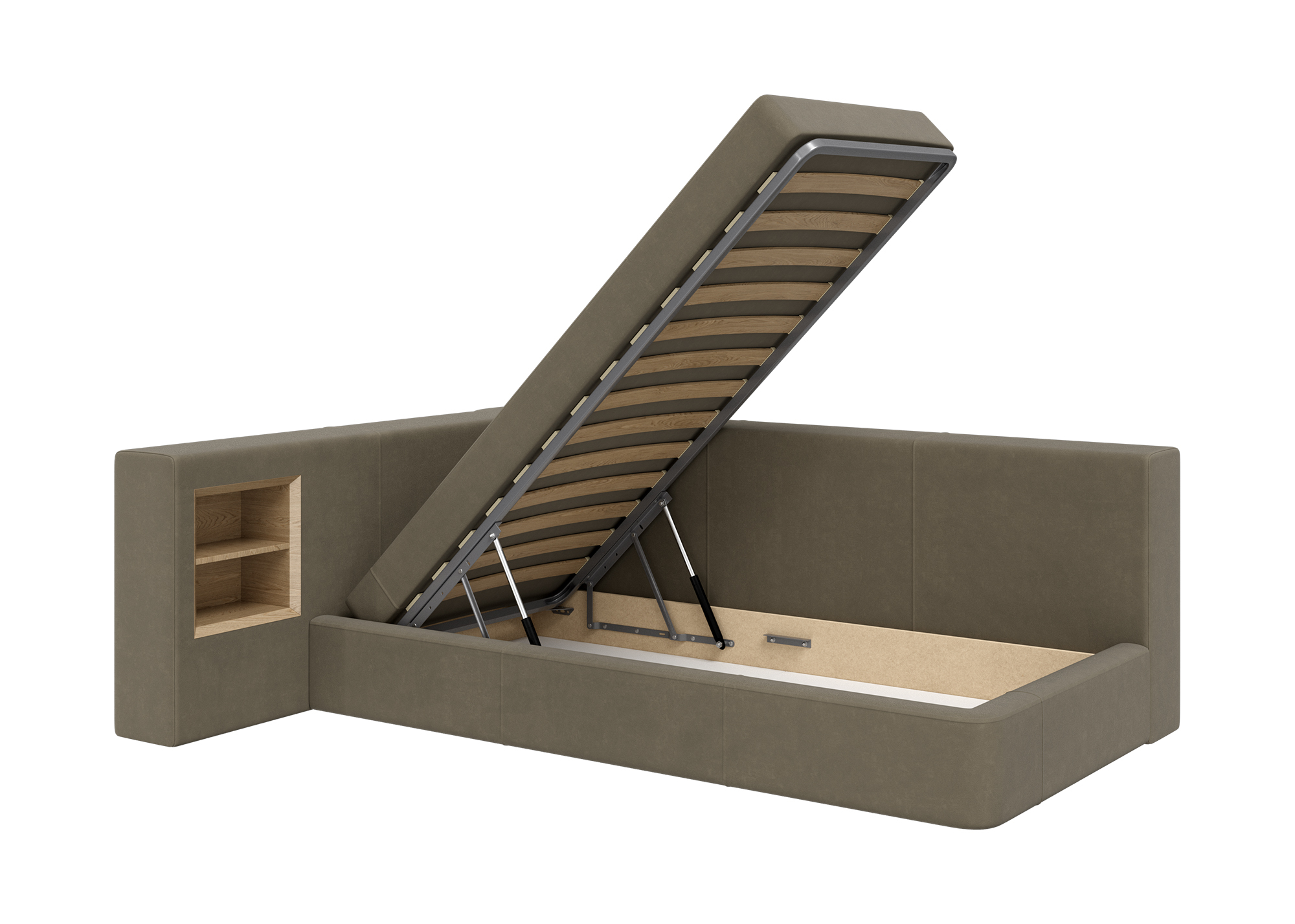 Оснащена подъёмным механизмом, местом для хранения, нишей и розеткой