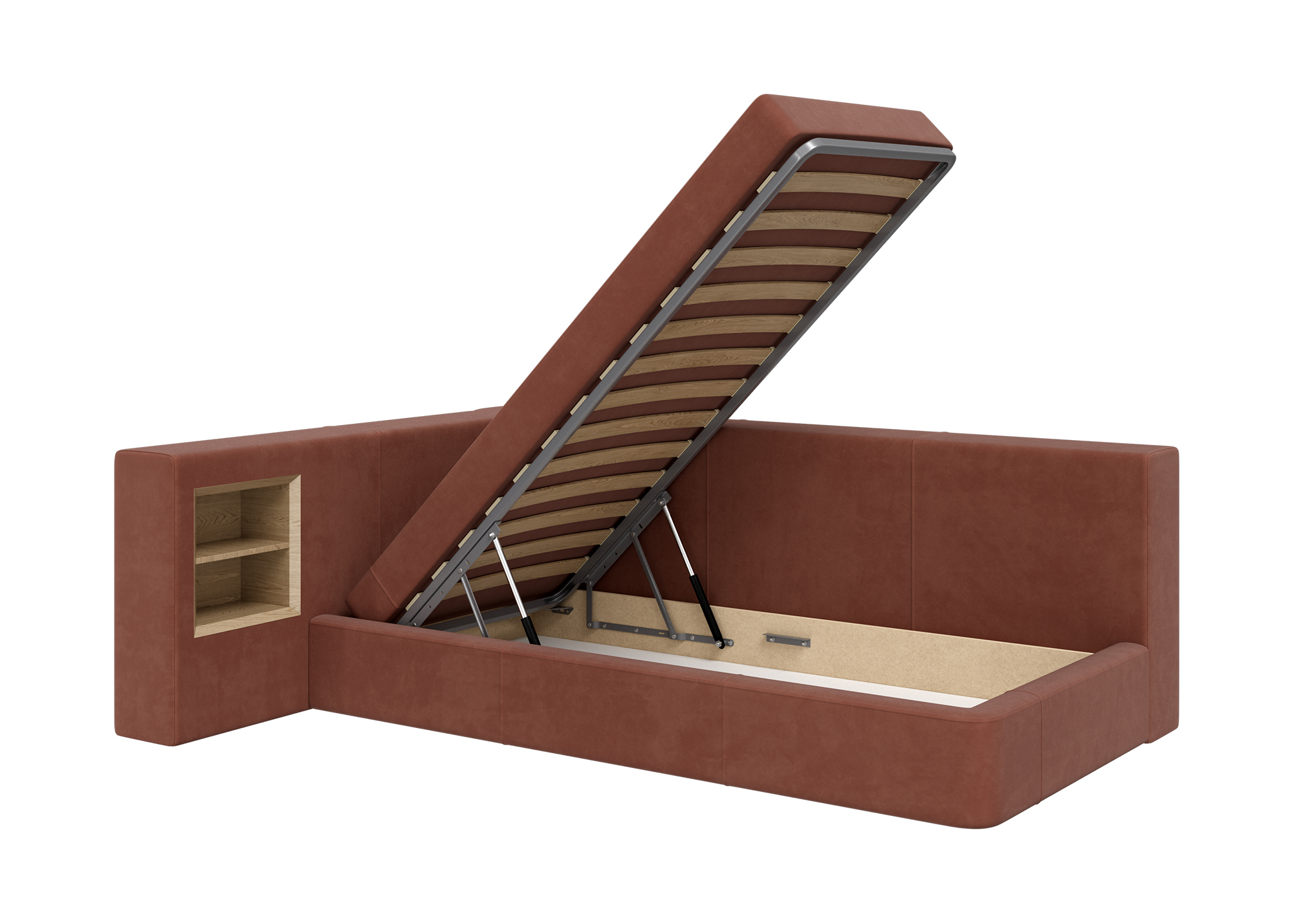Оснащена подъёмным механизмом, местом для хранения, нишей и розеткой