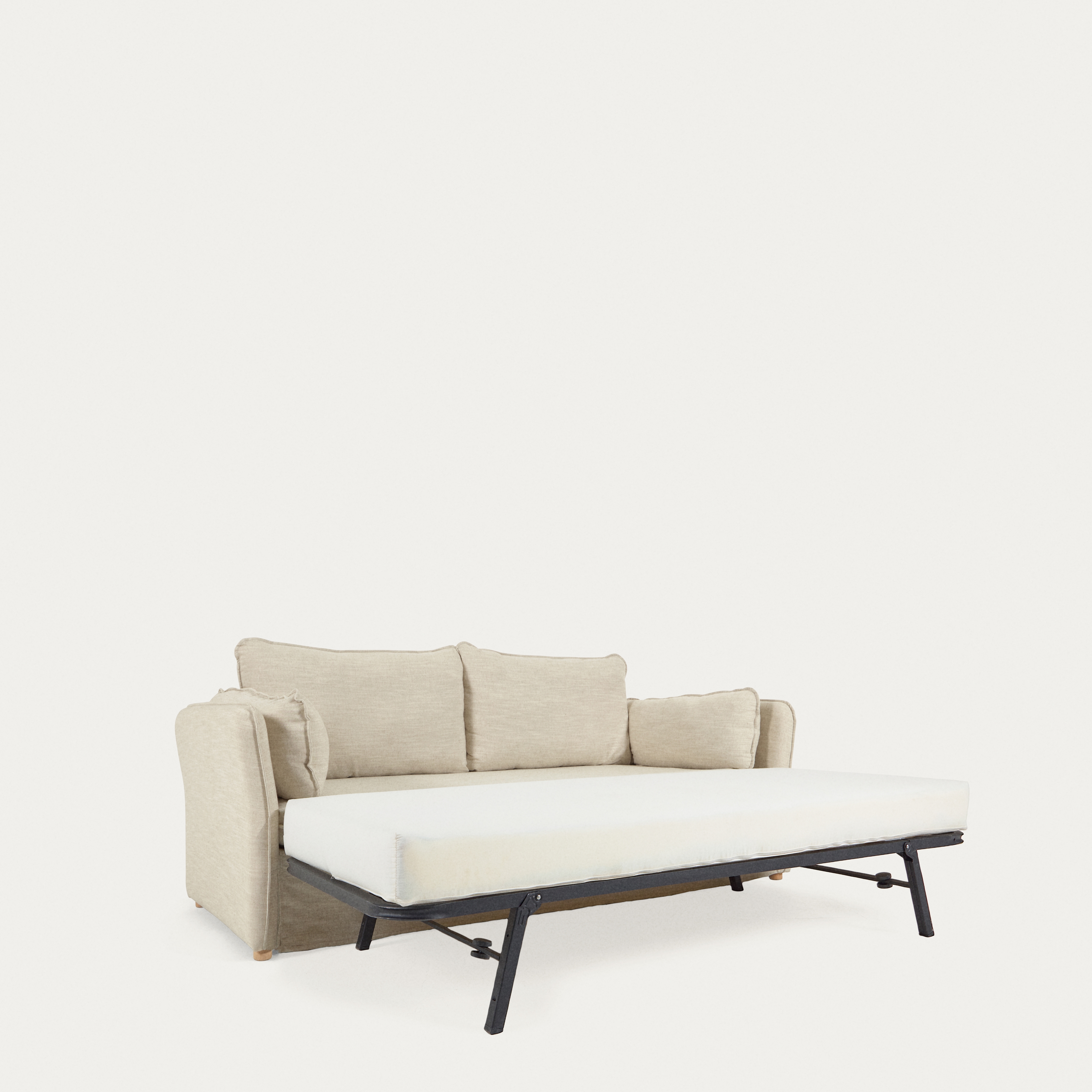 Раскладной диван-кровать с механизмом легкого открывания. Обивка из льна для дополнительного комфорта.