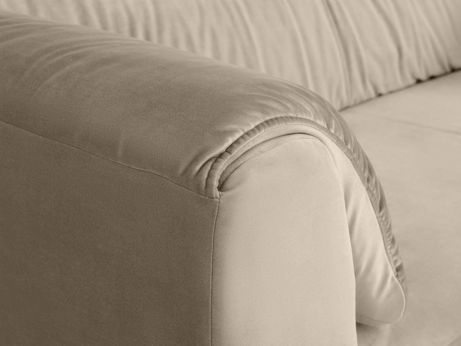 Оригинальный вид дивану придают подлокотники и спинка сложной формы: они скруглённые, многослойные, подлокотник и вовсе двойной: основная часть дополняется несъёмными подушками. На Marsala удобно сидеть, лежать, читать, делать всё, что угодно! Глубина сиденья — 100 см, вы можете устроиться с максимальным комфортом. За мягкость и поддержку отвечает наполнитель — Memory Foam, холлофайбер и другие современные виды пенополиуретана.