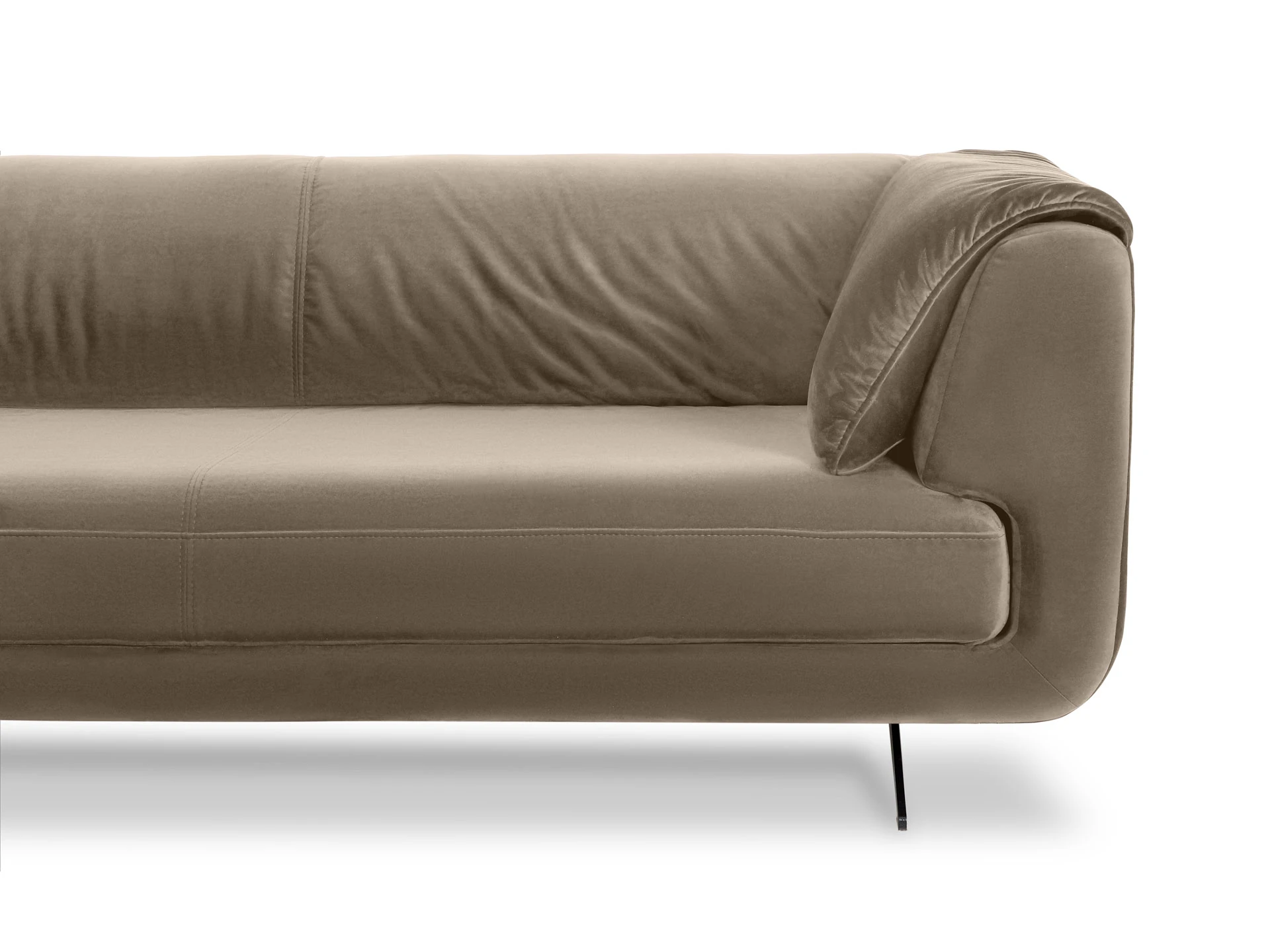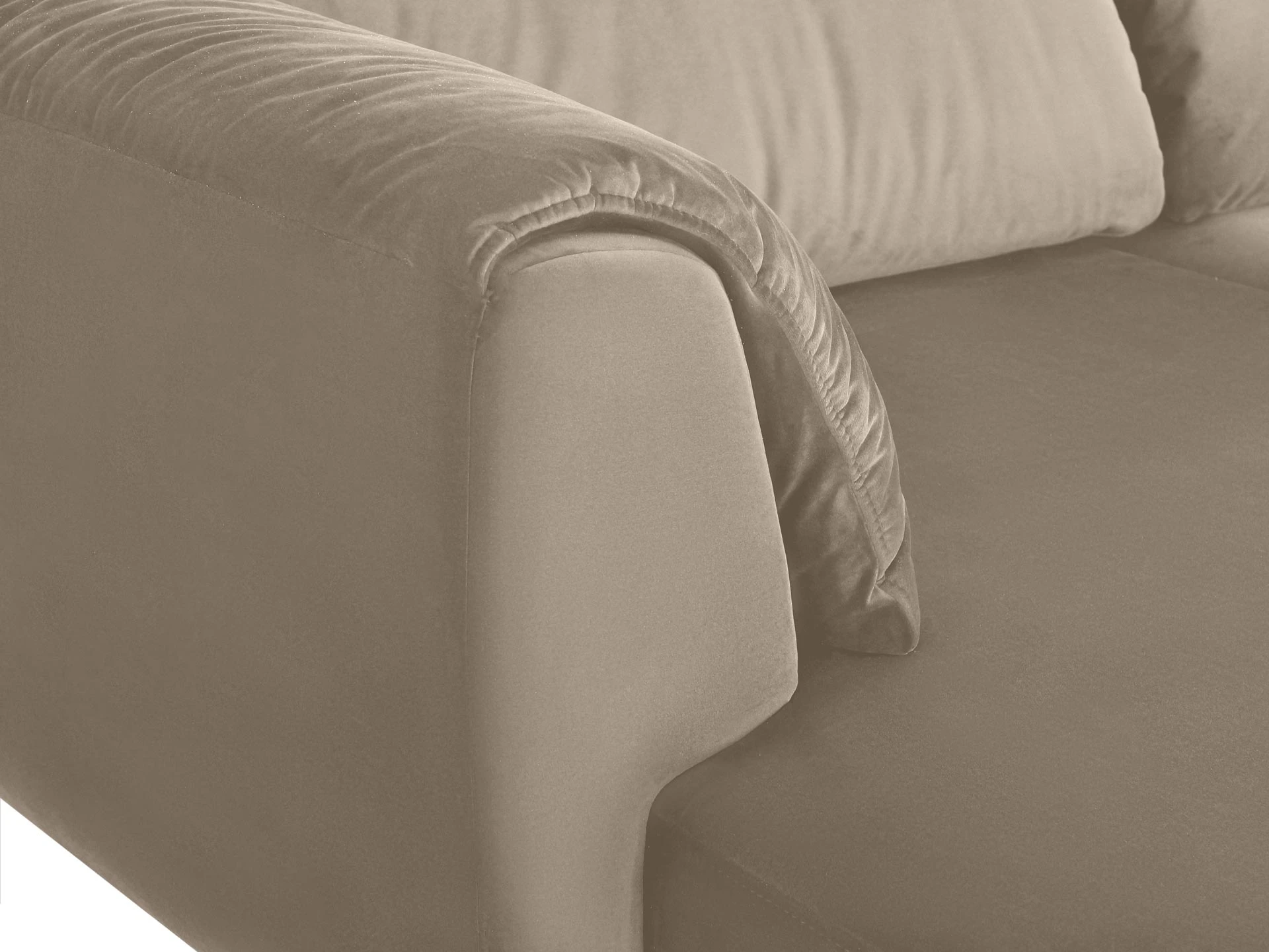 Оригинальный вид дивану придают подлокотники и спинка сложной формы: они скруглённые, многослойные, подлокотник и вовсе двойной: основная часть дополняется несъёмными подушками. На Marsala удобно сидеть, лежать, читать, делать всё, что угодно! Глубина сиденья — 100 см, вы можете устроиться с максимальным комфортом. За мягкость и поддержку отвечает наполнитель — Memory Foam, холлофайбер и другие современные виды пенополиуретана.