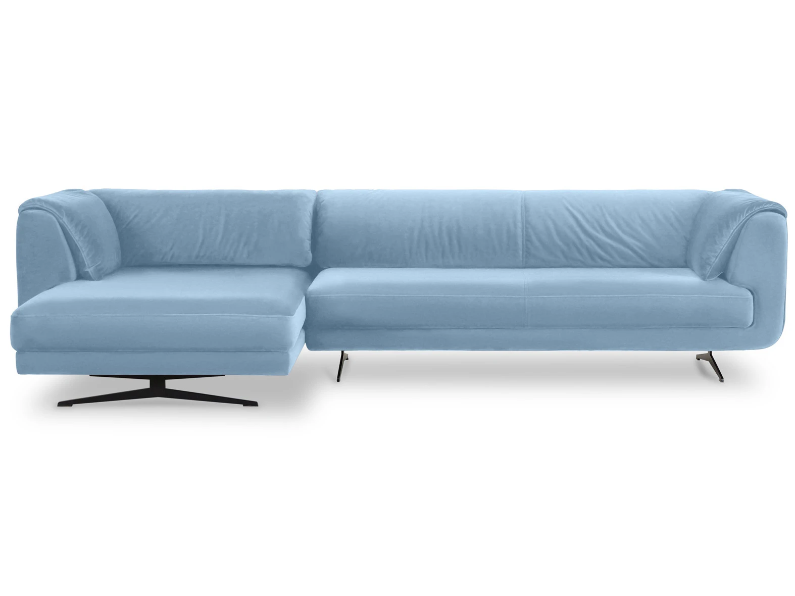 Он устойчивый — в основании использованы металлические опоры 150 см, которые дополнены подпятниками, чтобы не царапать линолеум, паркет или ламинат. Сиденье располагается на высоте 47 см, ширина углового дивана — 336 см, классической двухместной модели — 223 см.