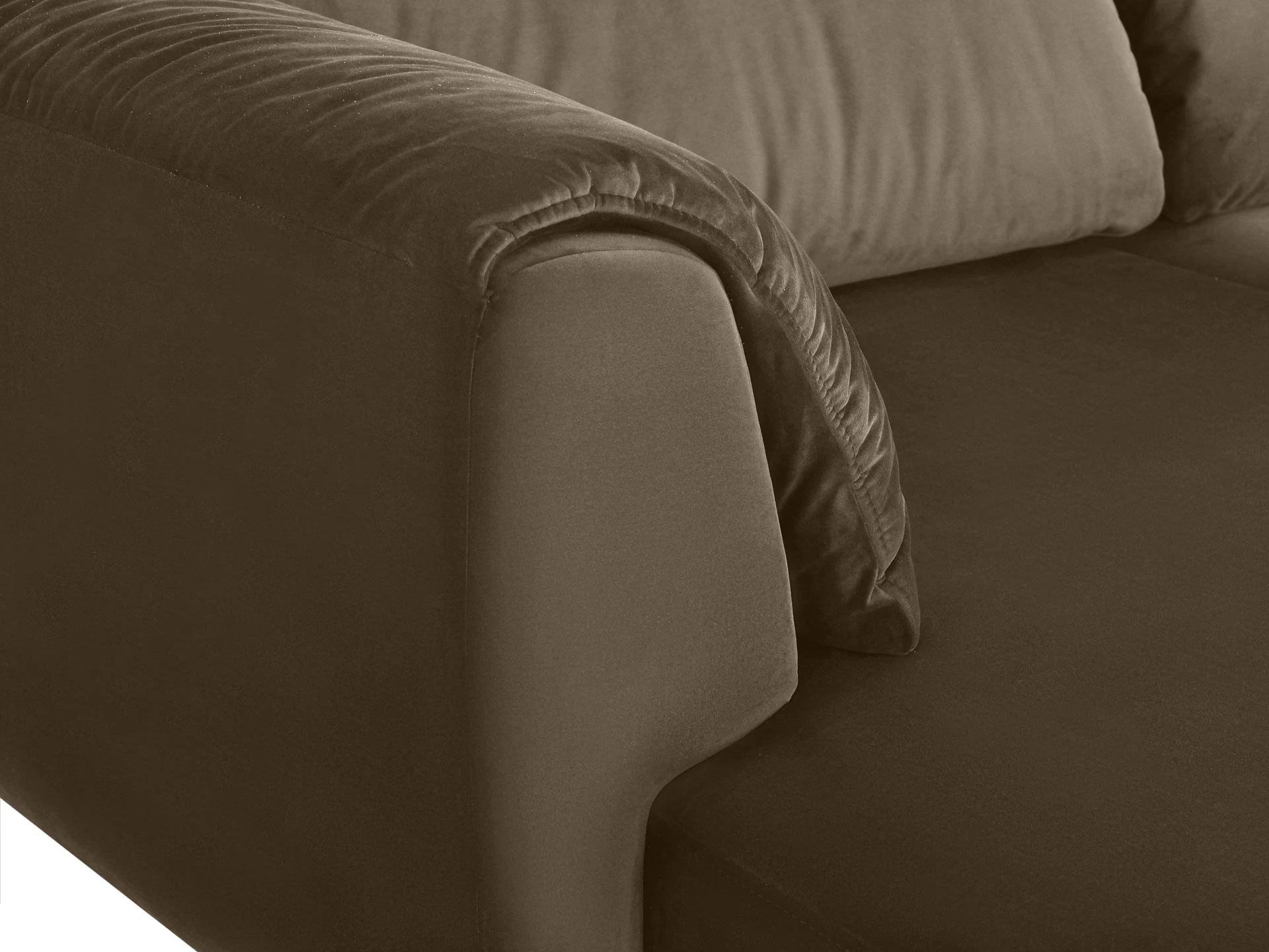 Оригинальный вид дивану придают подлокотники и спинка сложной формы: они скруглённые, многослойные, подлокотник и вовсе двойной: основная часть дополняется несъёмными подушками. На Marsala удобно сидеть, лежать, читать, делать всё, что угодно! Глубина сиденья — 100 см, вы можете устроиться с максимальным комфортом. За мягкость и поддержку отвечает наполнитель — Memory Foam, холлофайбер и другие современные виды пенополиуретана.