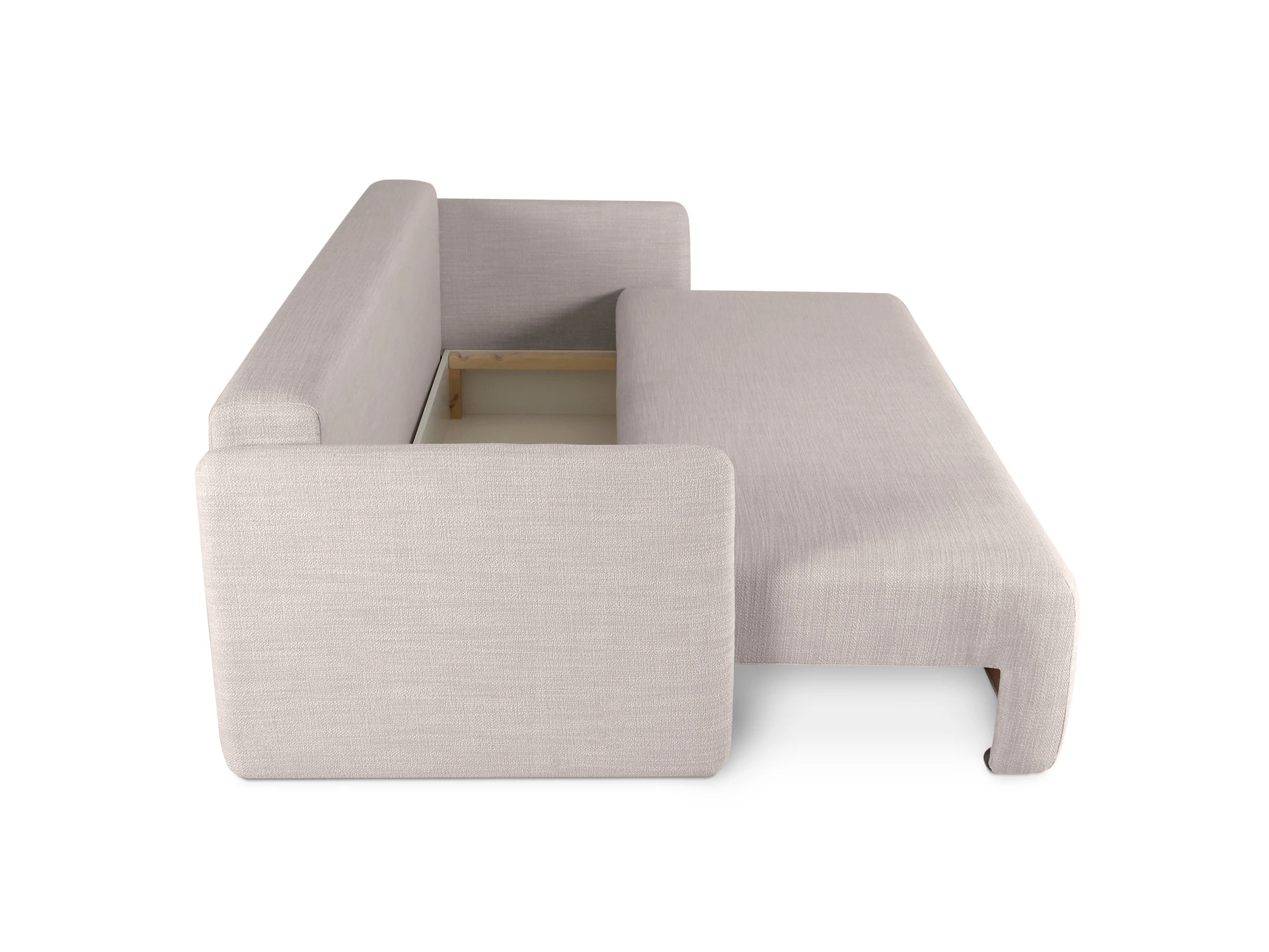 В диване используется механизм трансформации «еврокнижка». Принцип работы: сидение выдвигается вперед, а задняя спинка опускается в образовавшееся пространство. При раскладывании диван трансформируется в кровать с размером спального места 1990х1480 мм.