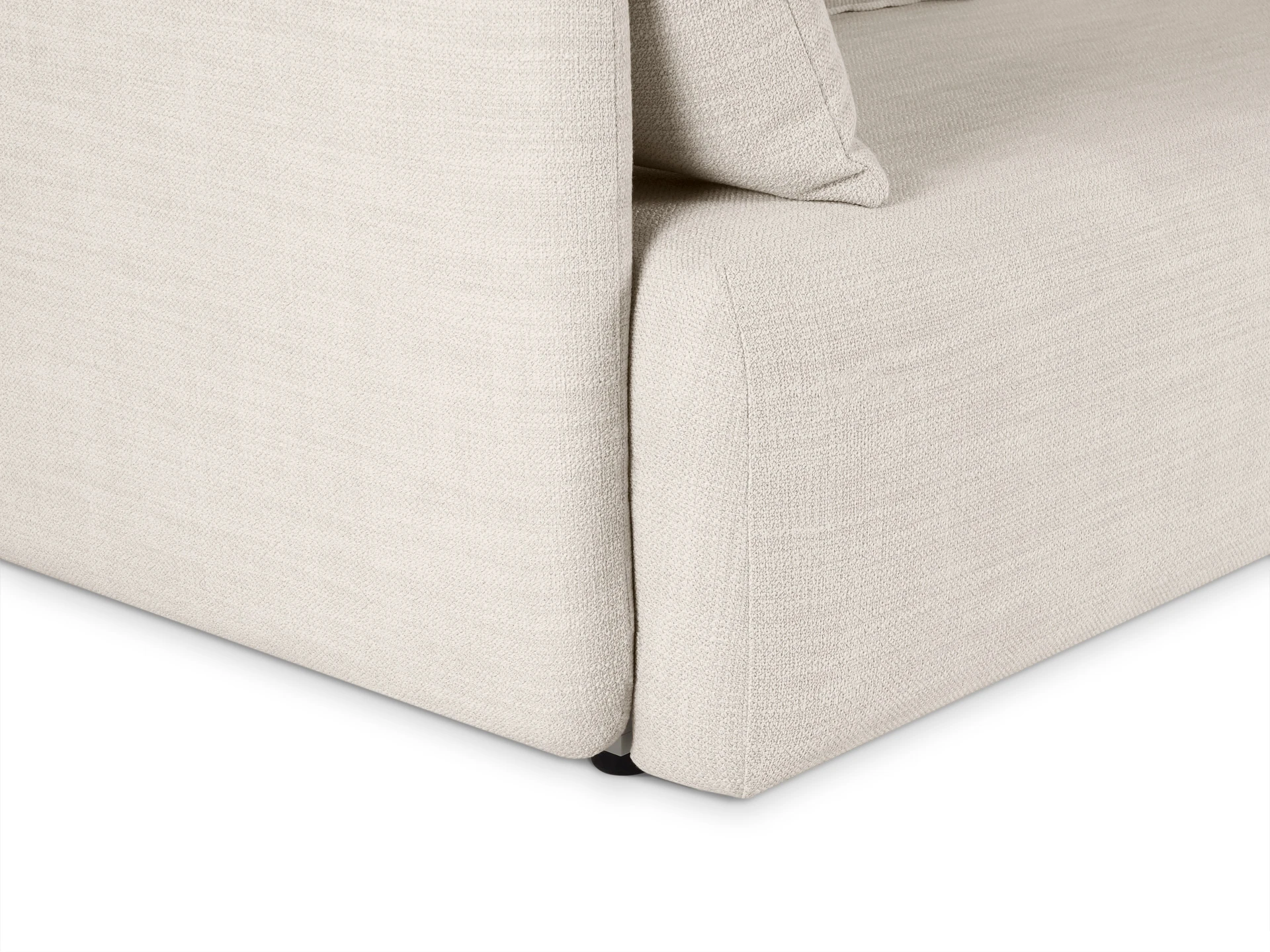 Силуэт модели играет элегантностью и простотой. Плавные линии, закругленные элементы, фактурная обивка, естественные оттенки поддержат высокий уровень комфорта и атмосферу дружелюбного притяжения в вашем пространстве. Диван обрадует просторным и удобным сиденьем, мягкими подушками спинки, подлокотников. Которые расположены практически на одном уровне со спинкой — такая геометрия создаёт ощущение уединённости, защиты.