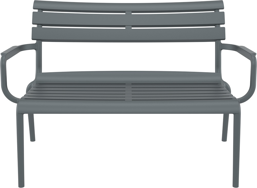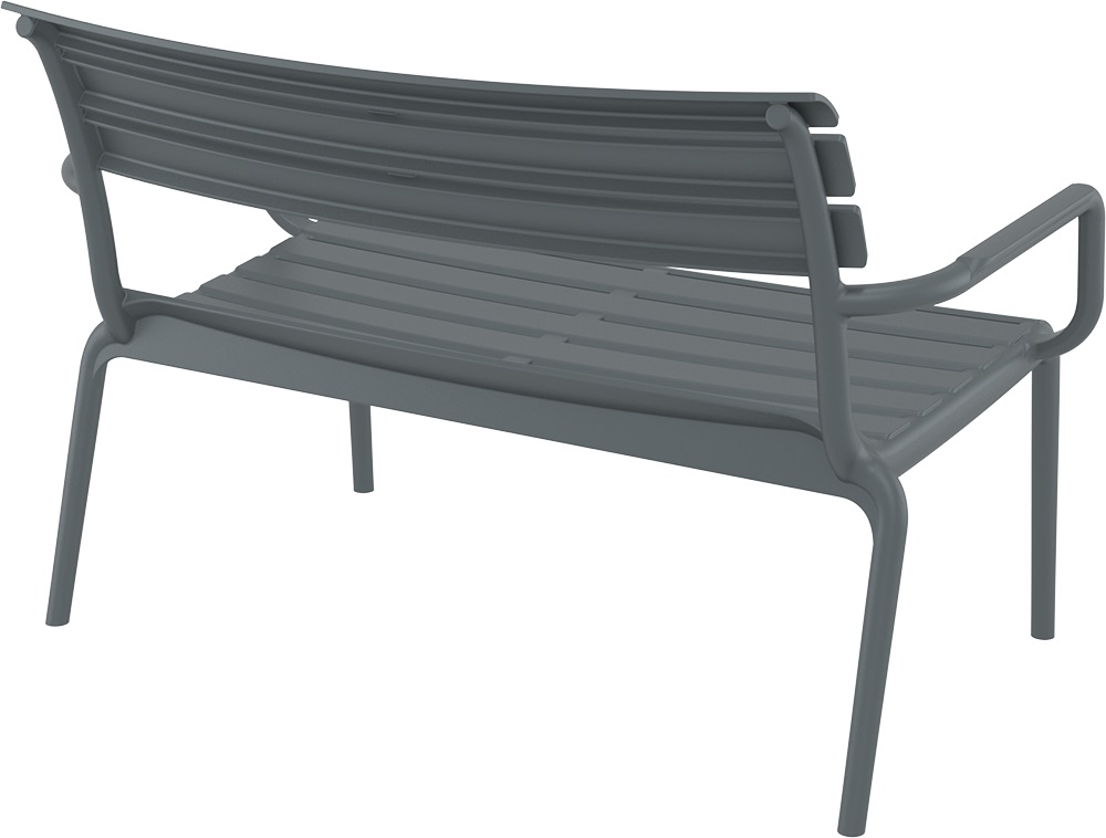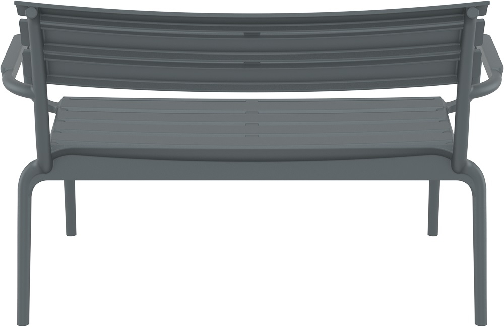 Paris Lounge — аккуратный темно-серый диван для террасы, балкона и зоны у бассейна, когда хочется современного вида без лишних забот. Прямая форма выглядит собранно и легко «держит» пространство: рядом одинаково уместны дерево, камень, бетон и яркий текстиль.