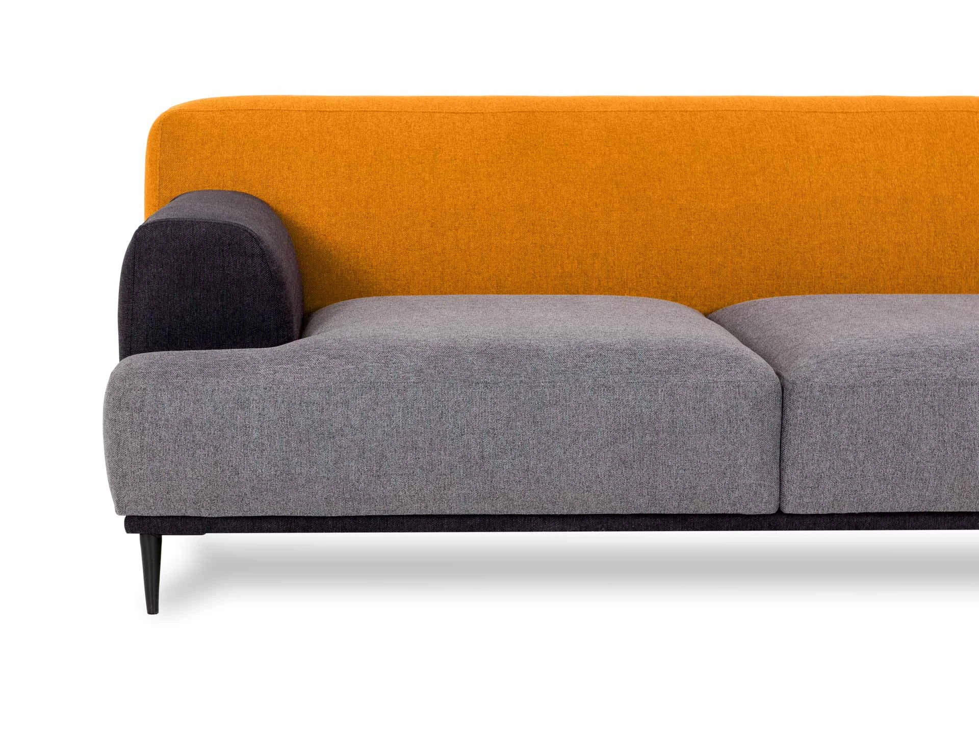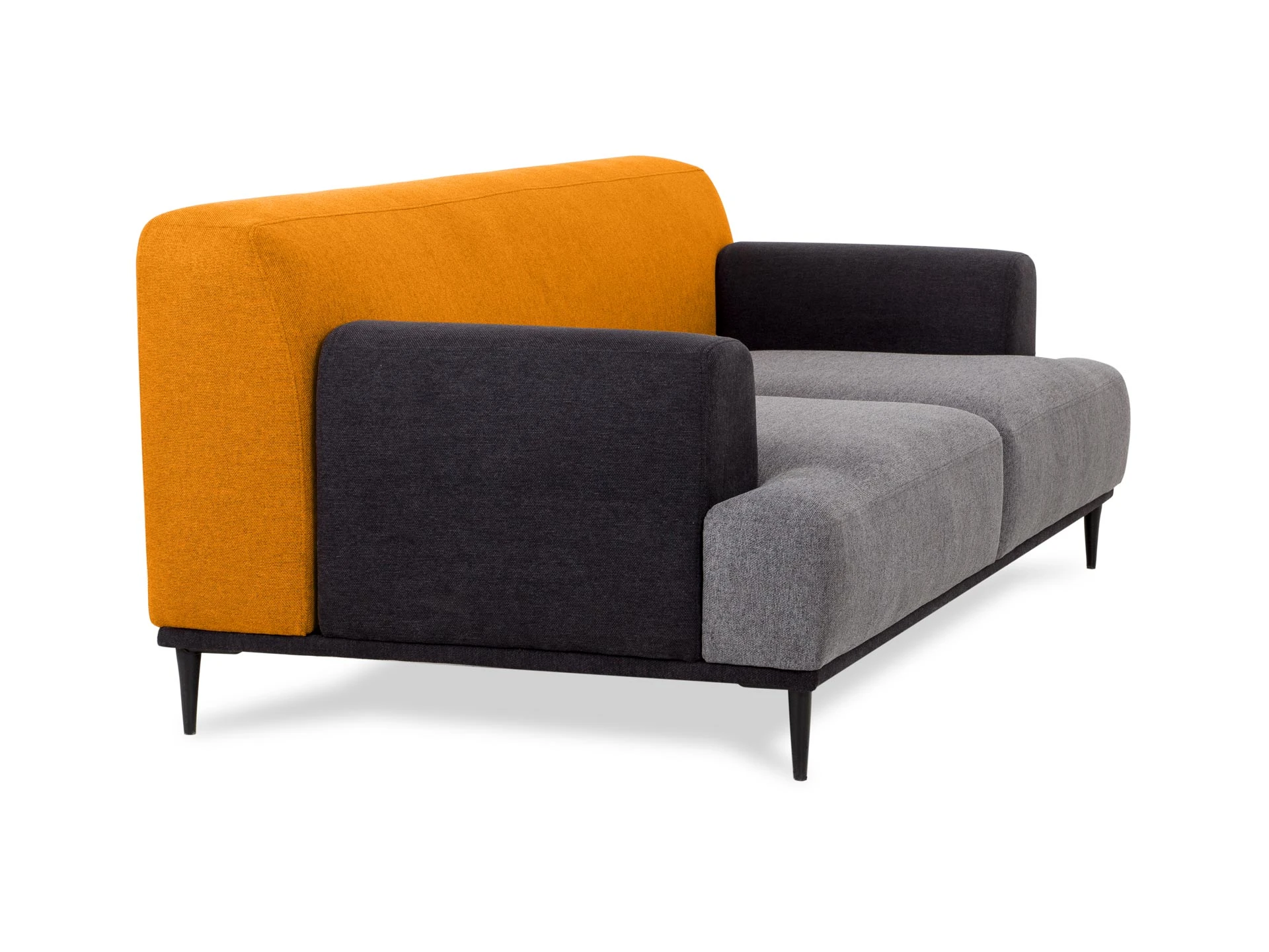 Модель отличается скульптурностью и динамичностью, а также популярными нотами конструктивизма. Основа дизайна — четкий силуэт, комбинация строгих и плавных линий. Геометрия на пике интерьерной моды. «Фишка» линейки — сочные цветовые сочетания в стилистике колор-блокинга. Оттенки могут быть темными, светлыми, играть на контрасте или едва заметно сменять друг друга, что поддержит небанальный характер пространства. Каркас дивана выполнен из бруса хвойных пород и высококачественной фанеры. Высокая спинка и мягкое сиденье обеспечивают максимально комфортные ощущения.