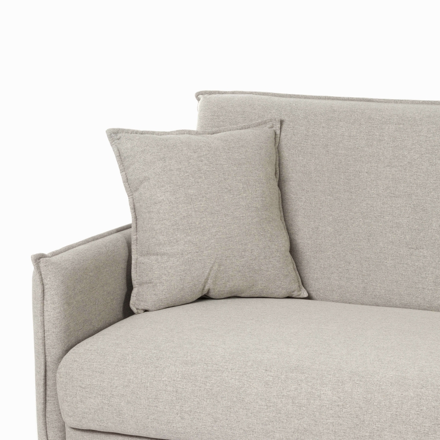 Диван отличается прямыми, лаконичными линиями и сдержанным дизайном. Съёмные подушки на молнии обеспечивают дополнительный комфорт и удобство в уходе. Высокие ножки модели смотрятся не только эстетично, но и облегчают уборку под диваном.