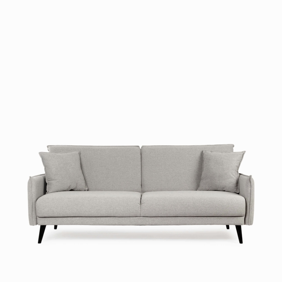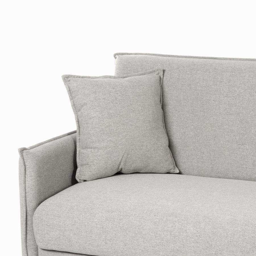 Диван отличается прямыми, лаконичными линиями и сдержанным дизайном. Съёмные подушки на молнии обеспечивают дополнительный комфорт и удобство в уходе. Высокие ножки модели смотрятся не только эстетично, но и облегчают уборку под диваном.