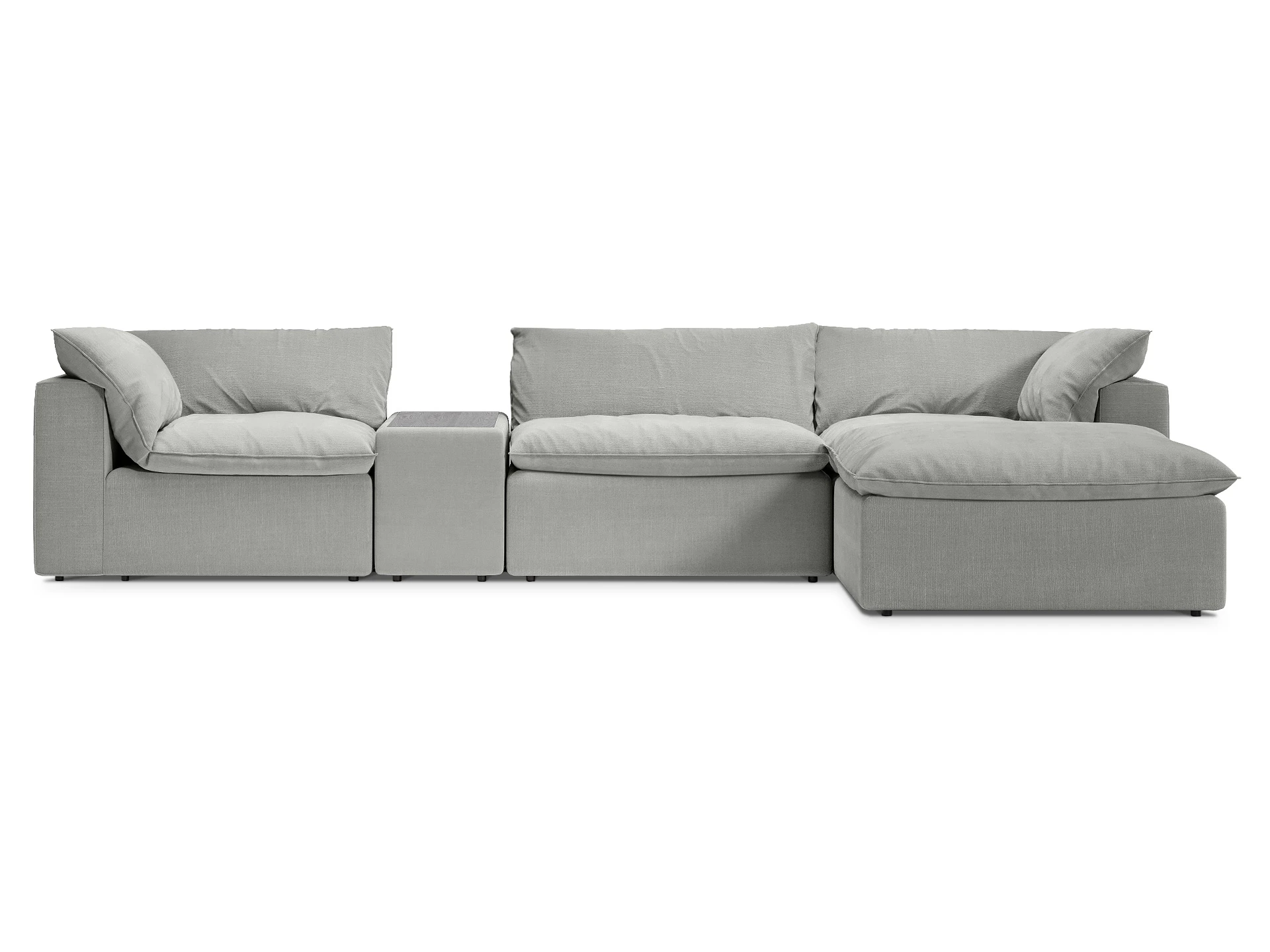 Лицевой чехол каркаса изделия - несъемный. Лицевой чехол покровных подушек- съемный, на молнии.