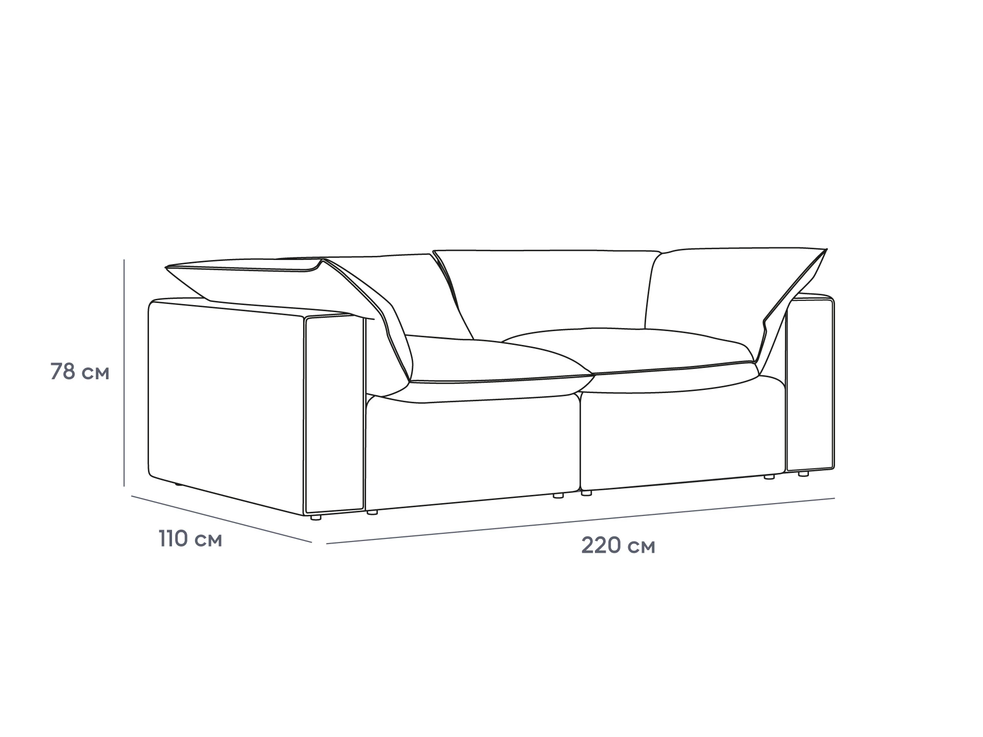 Лицевой чехол каркаса изделия - несъемный. Лицевой чехол покровных подушек- съемный, на молнии.