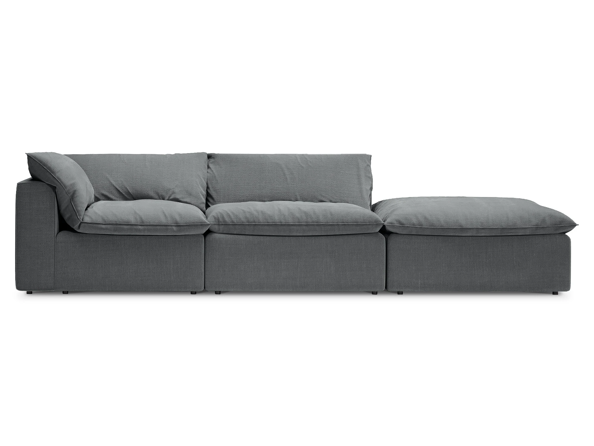 Лицевой чехол каркаса изделия - несъемный. Лицевой чехол покровных подушек- съемный, на молнии.
