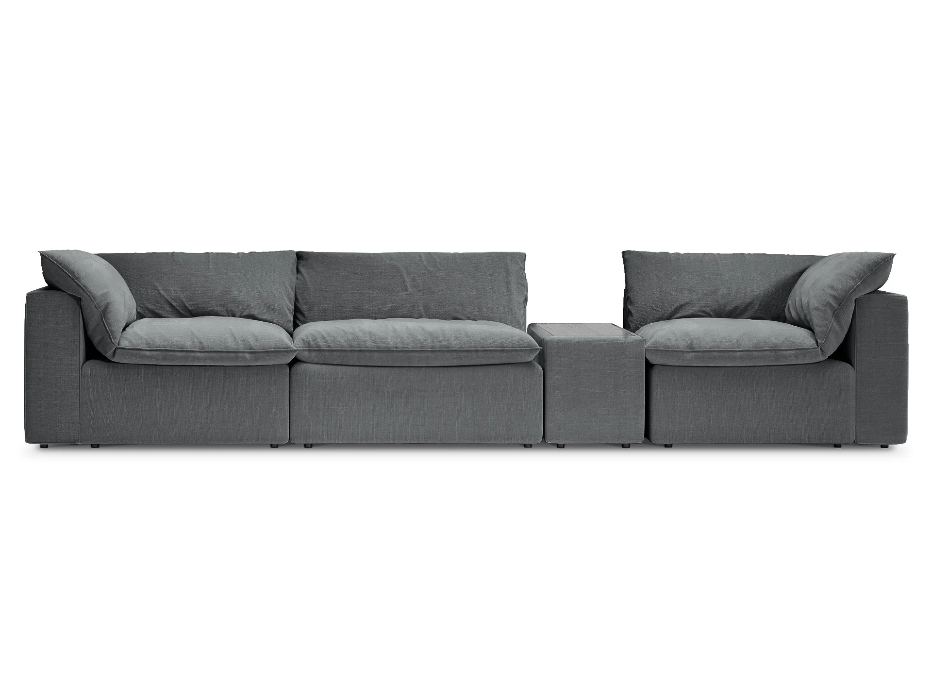Лицевой чехол каркаса изделия - несъемный. Лицевой чехол покровных подушек- съемный, на молнии.