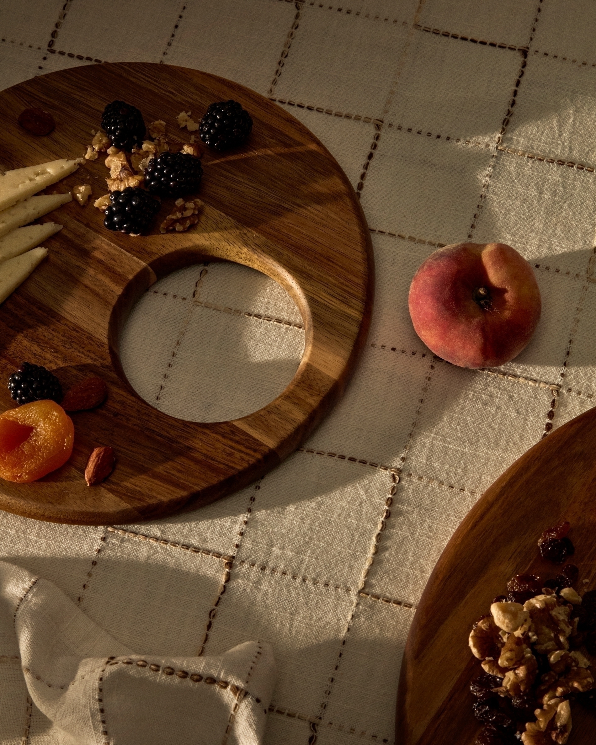 Для подачи ваших любимых рецептов мы представляем небольшую круглую доску Klot. Помимо наслаждения едой, вы также можете наслаждаться прекрасным украшением с помощью этой доски из акации.