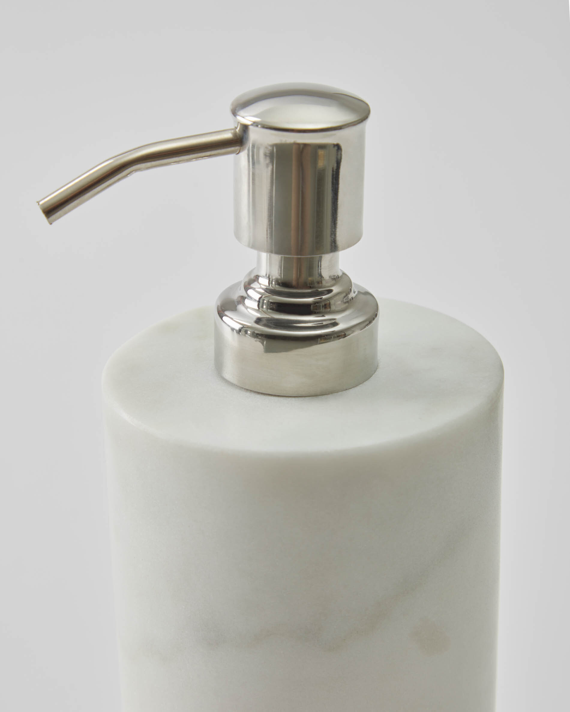 Наконечник дозатора для мыла сделан из металла с хромированным покрытием, которое не теряет своего вида при контакте с водой.