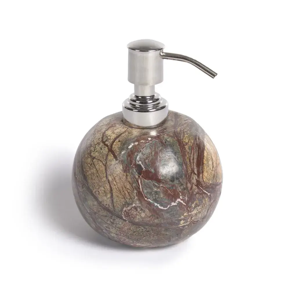 Дозатор для жидкого мыла Spalsh – совершенно уникальный аксессуар для вашей ванной комнаты. Созданный из натурального мрамора, он имеет уникальные тона и орнамент. Сочетая с остальными аксессуарами из коллекции, вы получите неповторимый, индивидуальный дизайн и ежедневно будете восхищаться своими этими уникальными деталями.