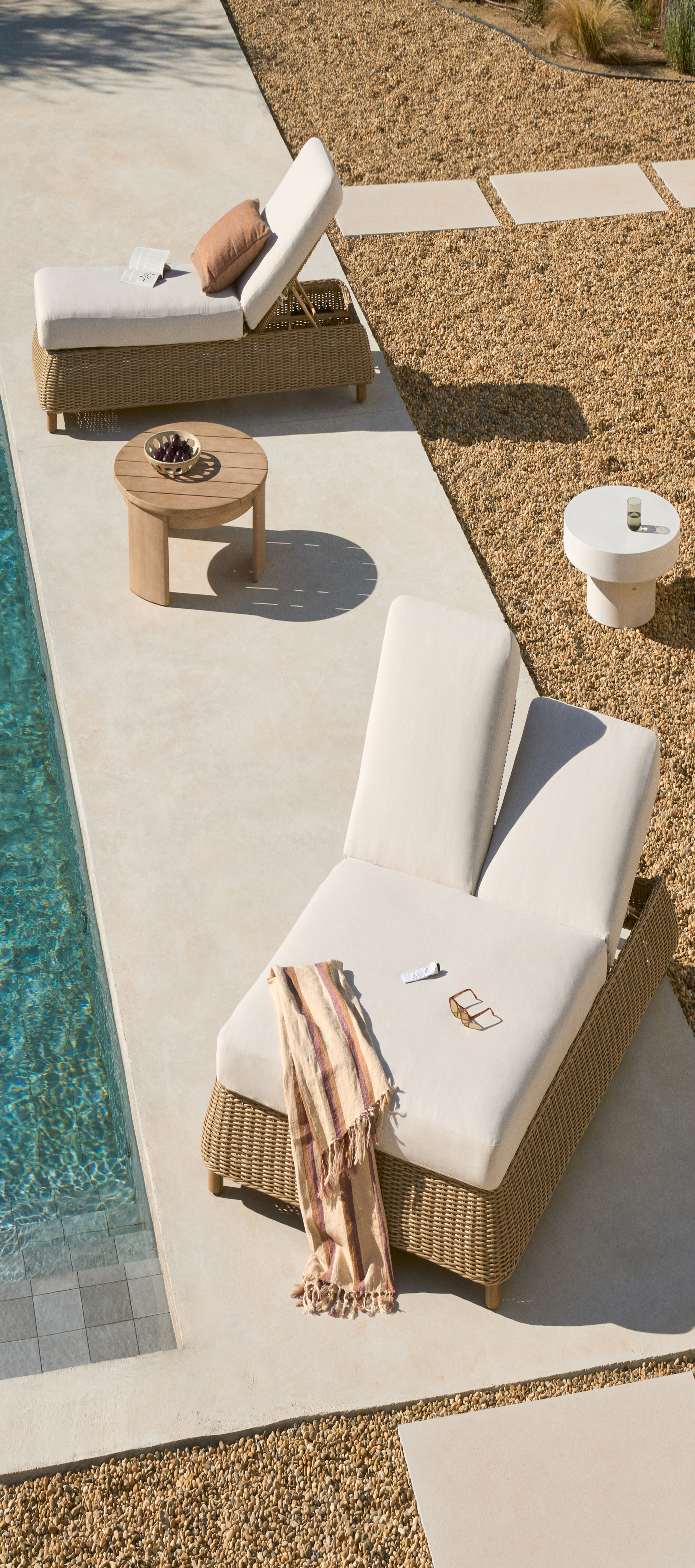 Коллекция, которая сочетает в себе деревенскую природу и практичность синтетического ротанга с эстетикой, характеризующейся плавными, округлыми линиями. Она устойчива к погодным условиям, что позволяет ей сохранять свою красоту и структуру как в помещении, так и на открытом воздухе, а также ее легко чистить.