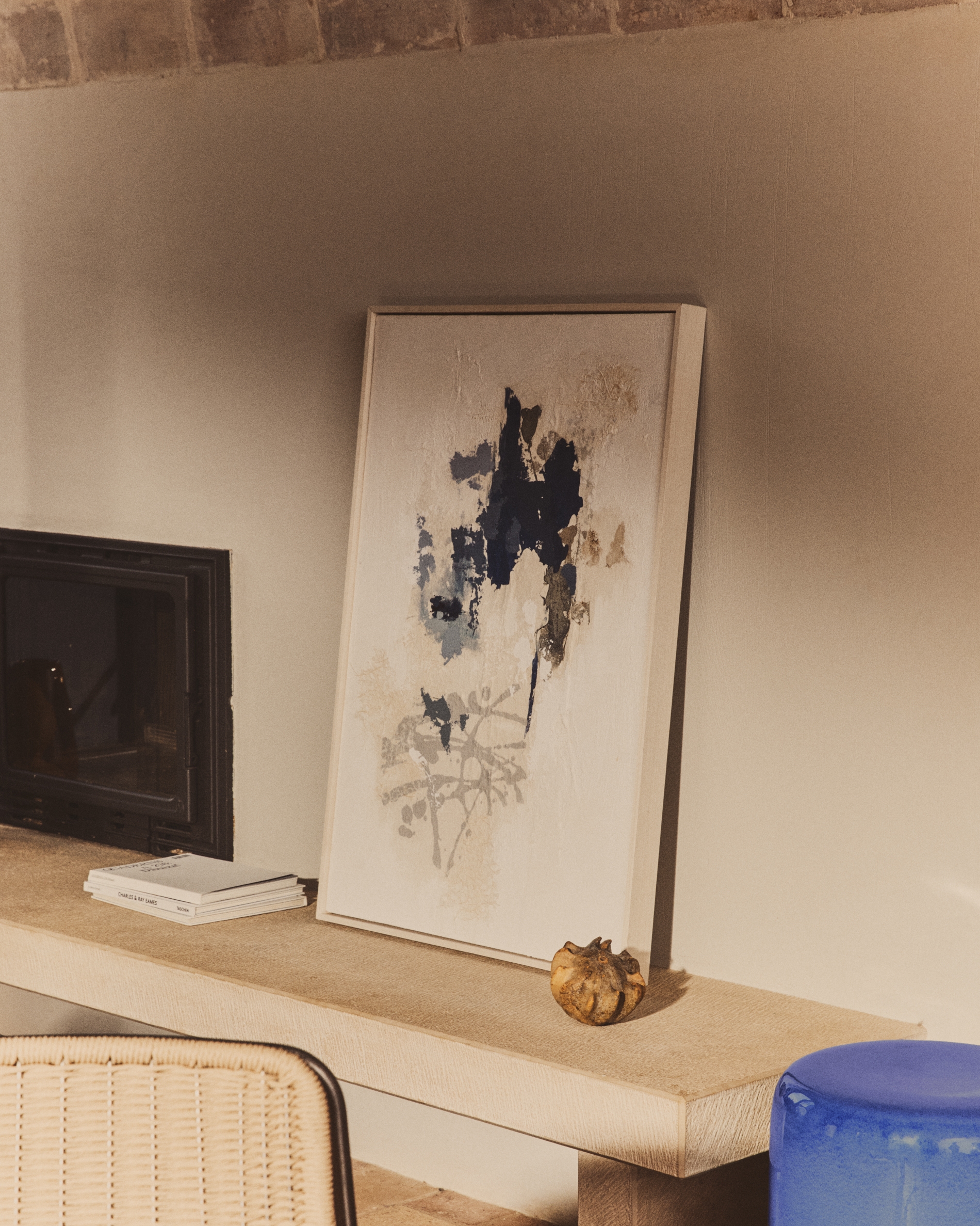 Картина «Эрале» сочетает в себе оттенки серого и синего в абстрактной композиции, которая выделяется различными текстурами, проходящими по ее поверхности. Мазки перекрываются нерегулярно, создавая произведение с визуальной глубиной и спокойным характером. Поскольку картина написана вручную, каждая из них имеет небольшие вариации, что делает ее уникальной. В комплект входит рама и D-образное крепление для подвешивания, разработанное для удобства размещения на стене в зависимости от ее типа.
