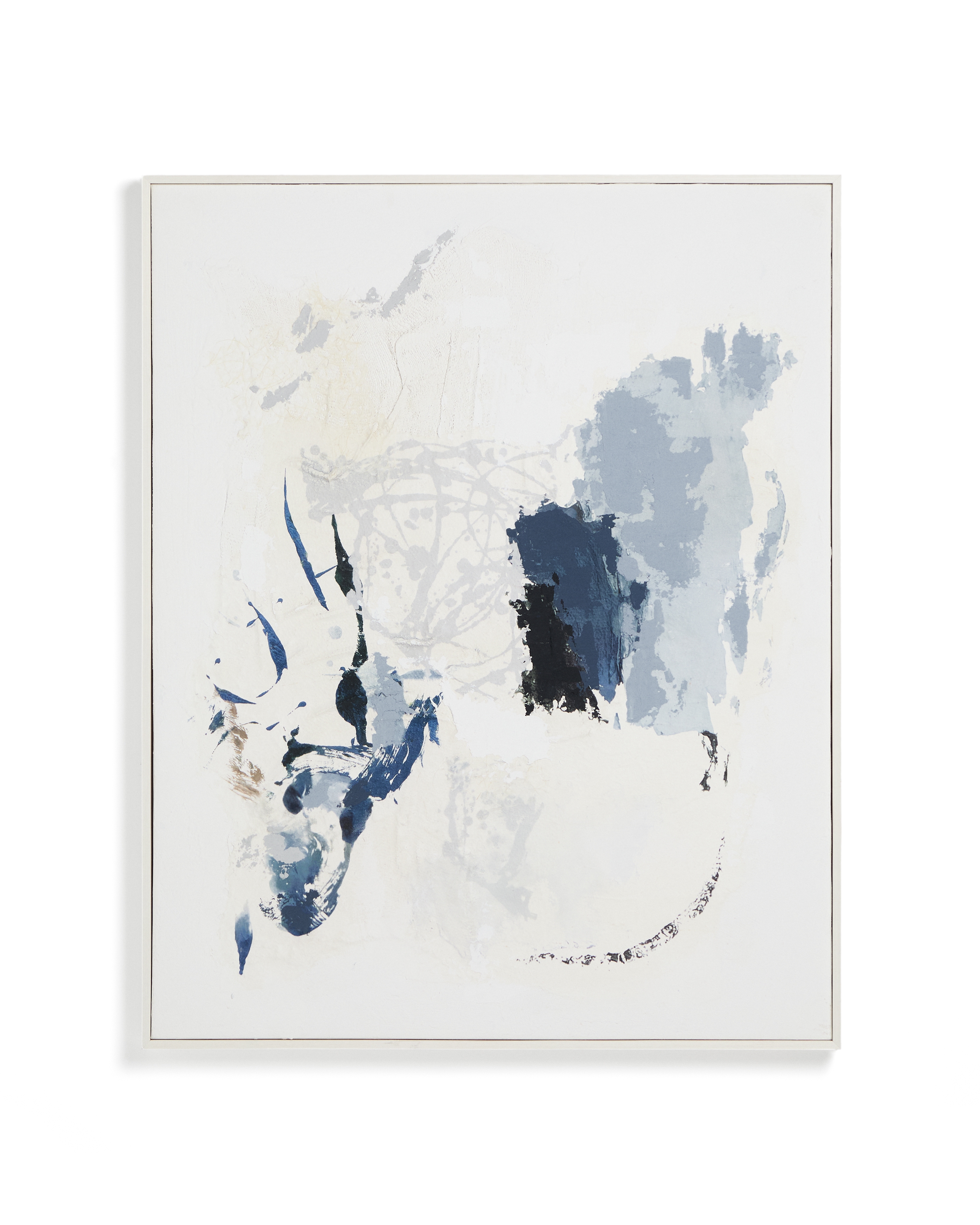 Картина «Эрале» сочетает в себе оттенки серого и синего в абстрактной композиции, которая выделяется различными текстурами, проходящими по ее поверхности. Мазки перекрываются нерегулярно, создавая произведение с визуальной глубиной и спокойным характером. Поскольку картина написана вручную, каждая из них имеет небольшие вариации, что делает ее уникальной. В комплект входит рама и D-образное крепление для подвешивания, разработанное для удобства размещения на стене в зависимости от ее типа.