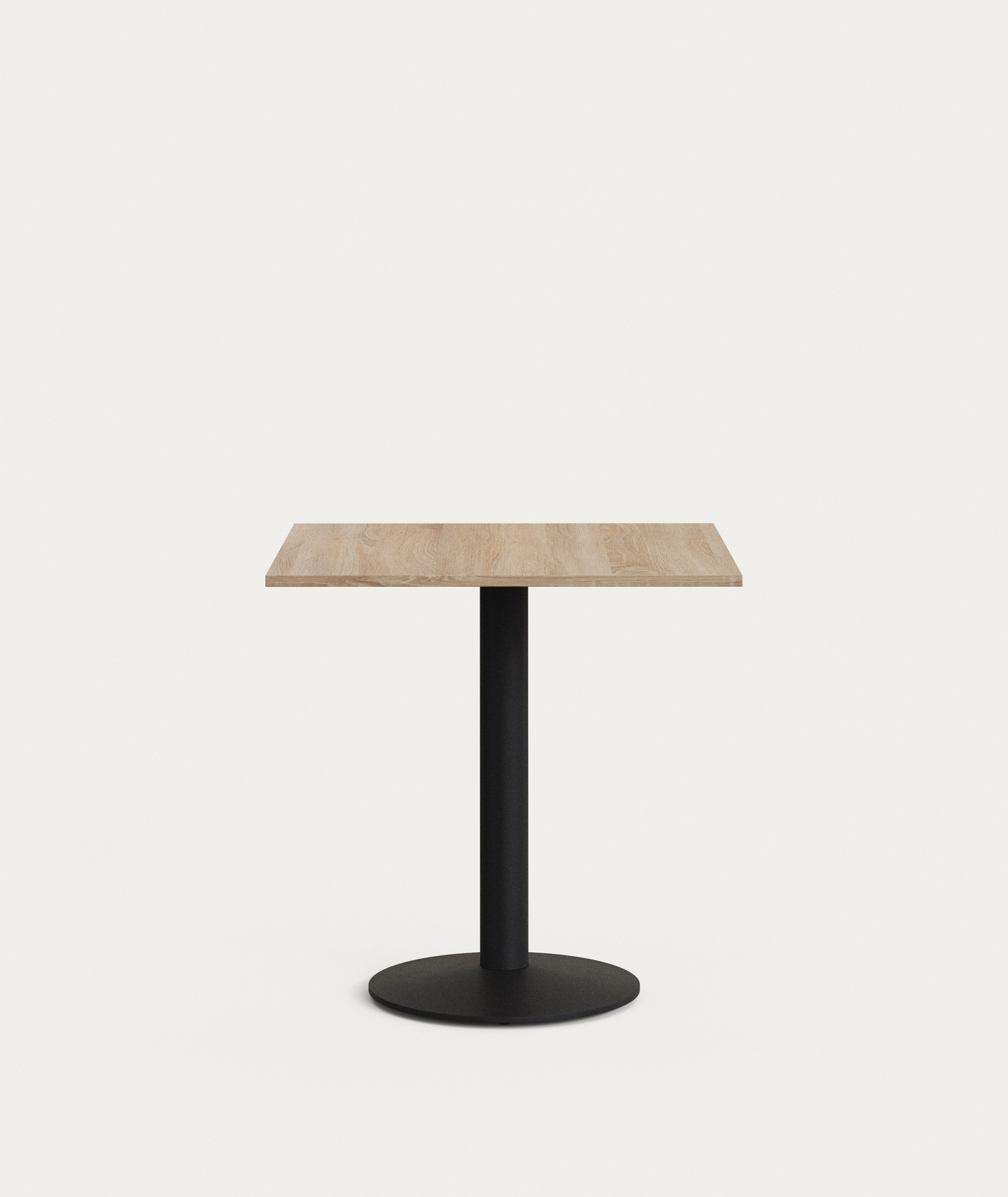 Стол с меламиновой столешницей, толщиной 19 мм. Железная ножка, окрашенная в матовый черный цвет. Подходит для внутренних помещений.