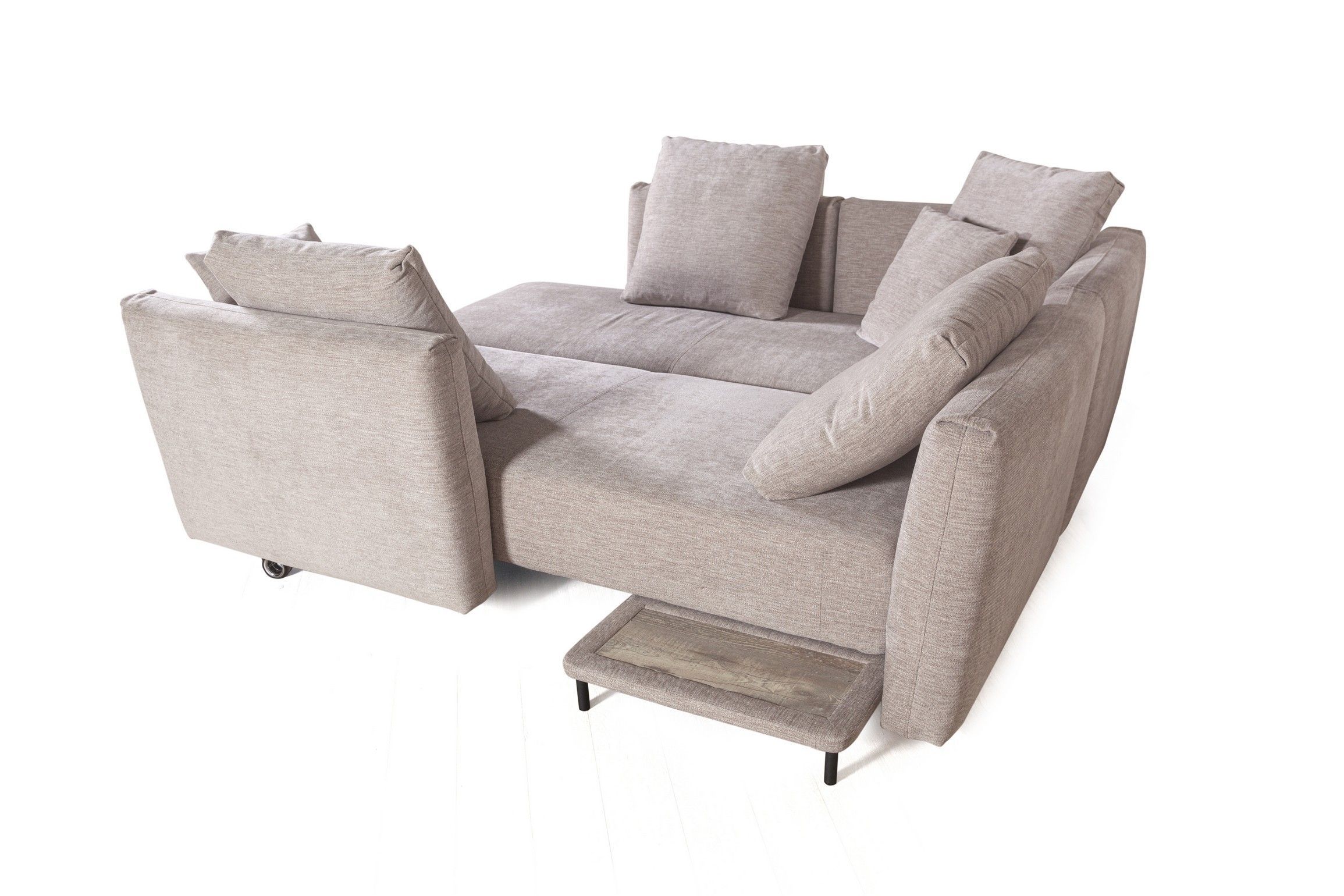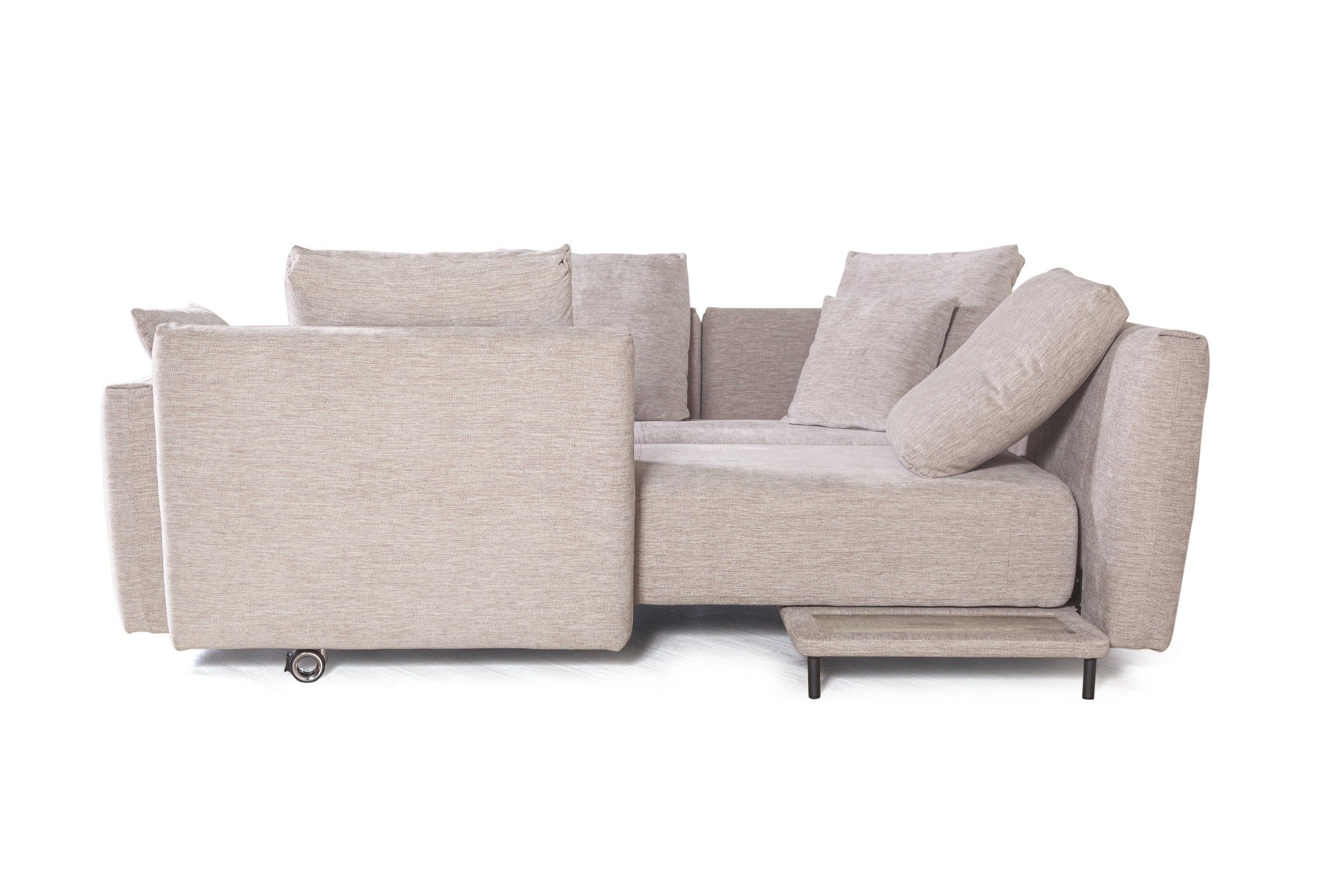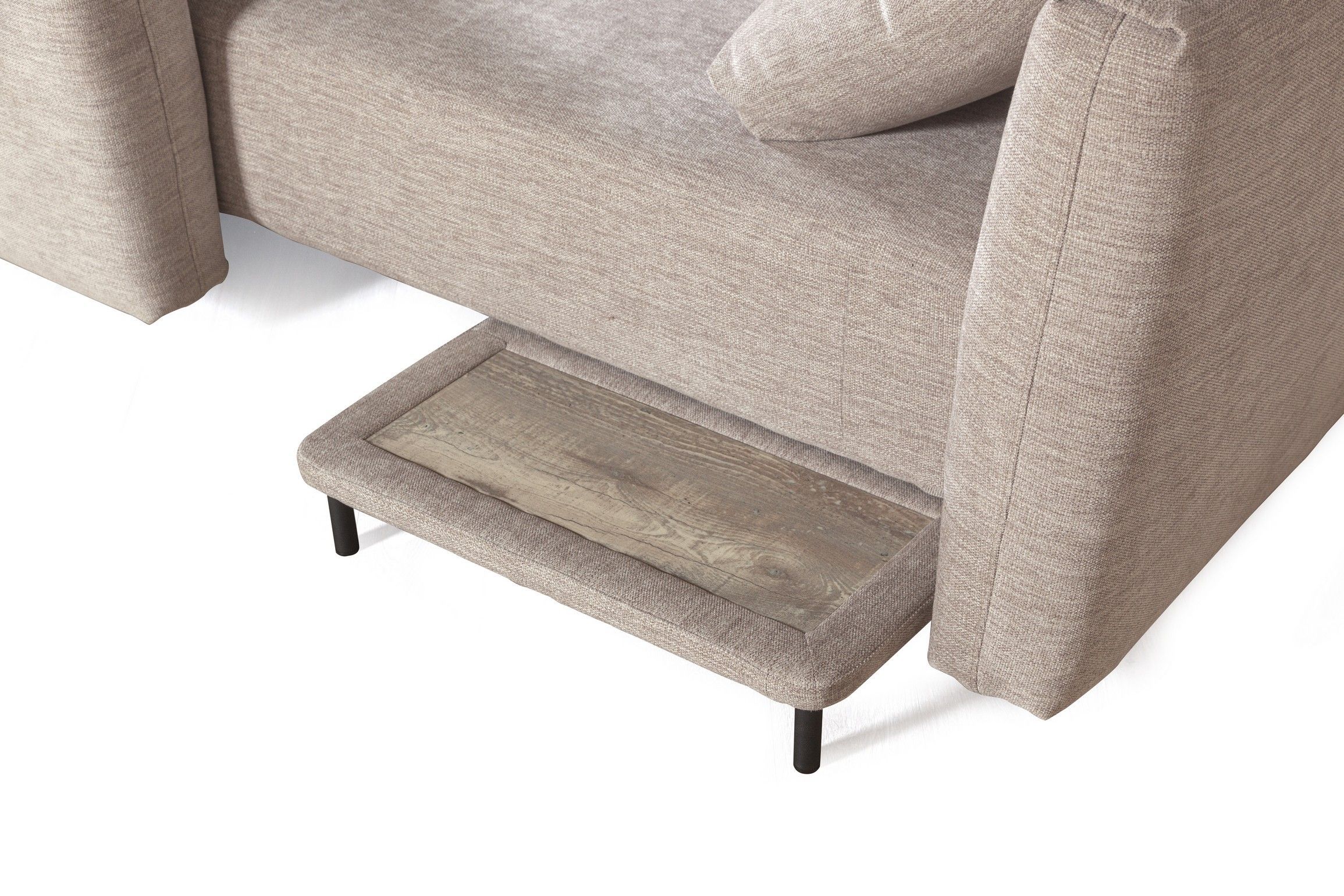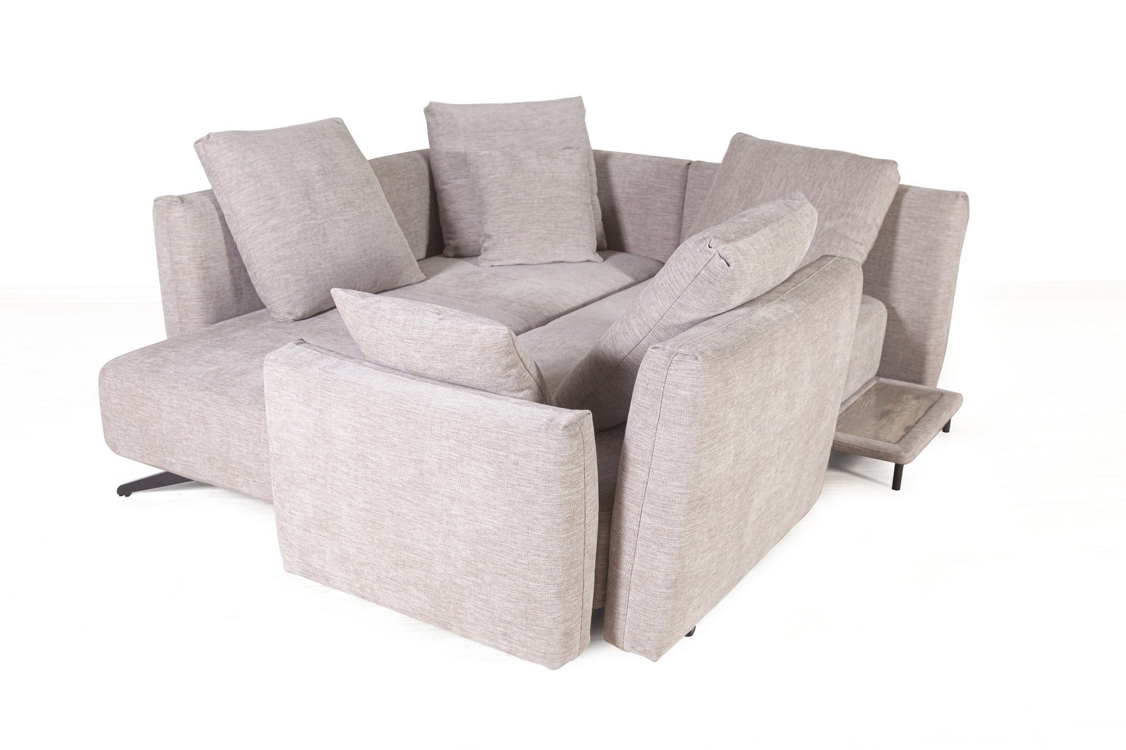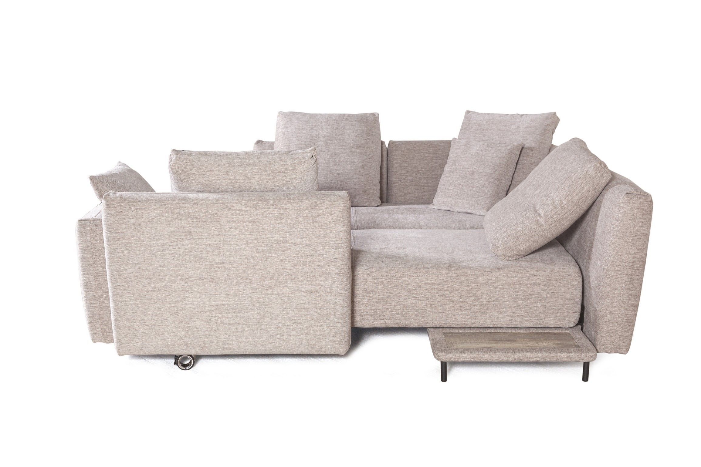 Прикроватный столик появляется, когда диван трансформируется в спальное положение. Столик позволяет удобно разместить рядом гаджет или чашечку кофе.