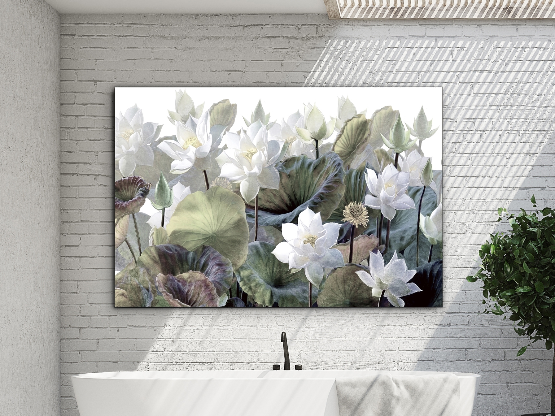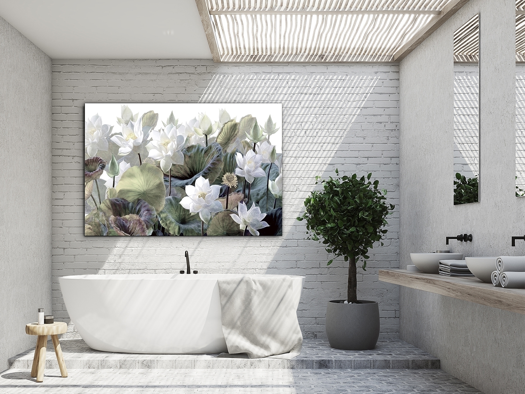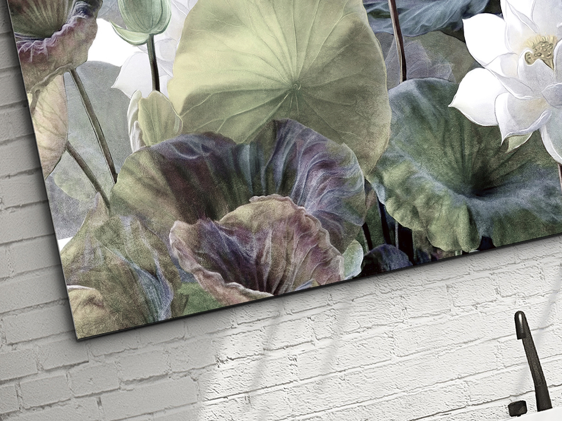 Печатная фотография, наклеенная на закаленное стекло. Подвесные металлоконструкции в комплекте.