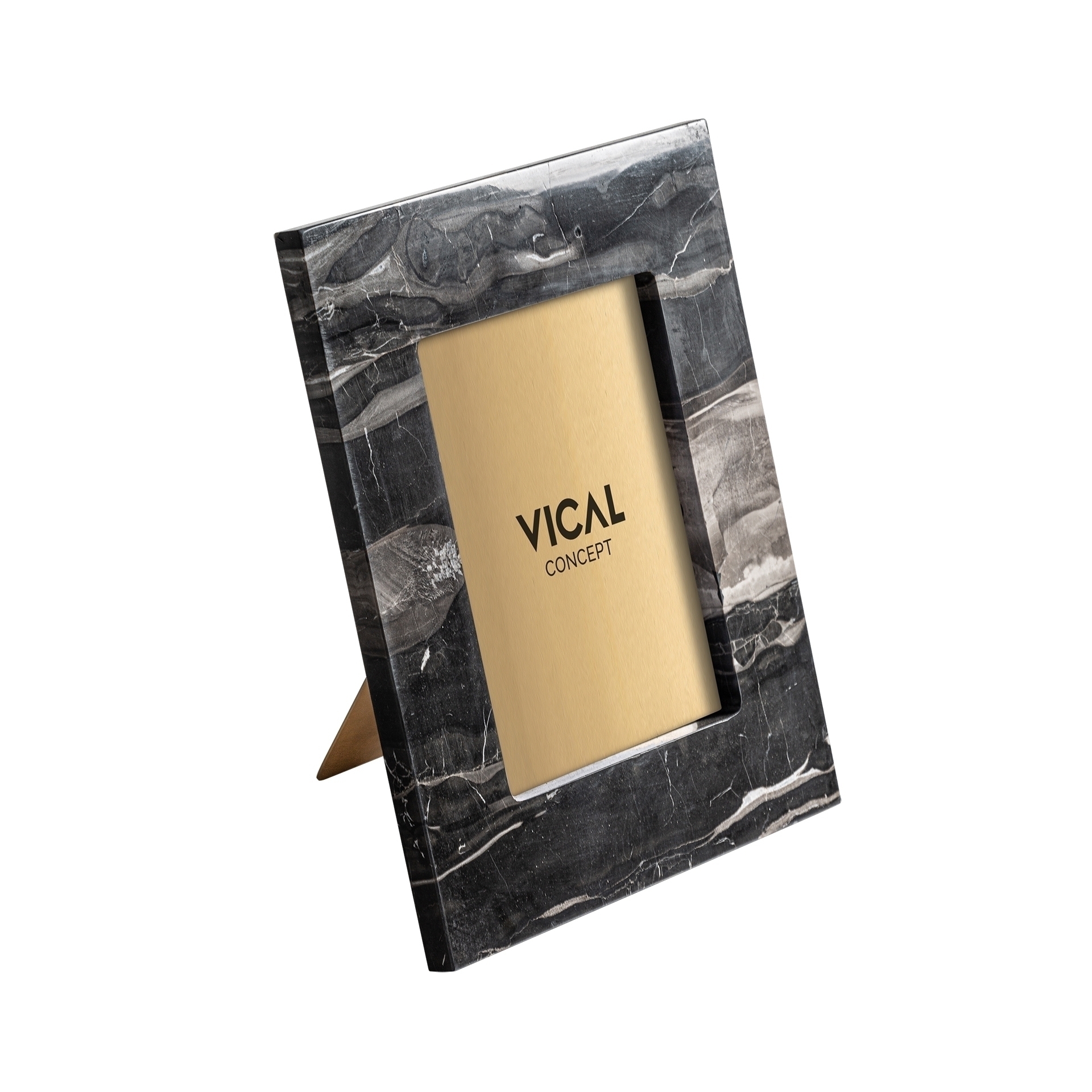 Черная фоторамка в стиле арт-деко. Изготовлен из бронзы в сочетании с мрамором и акрилом.