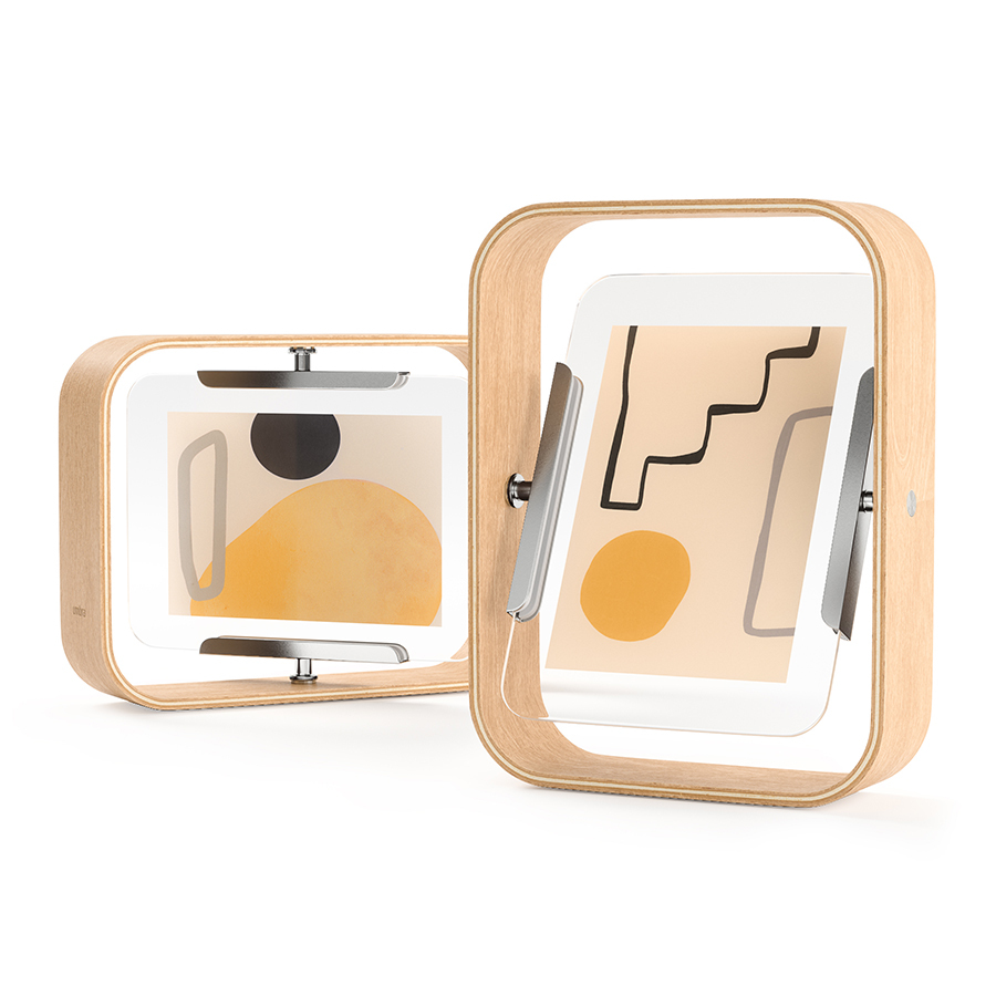 - Вращение на 360° и двусторонняя конструкция позволяет легко переключаться между портретной и альбомной ориентацией, а также менять само изображение.