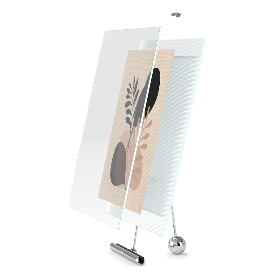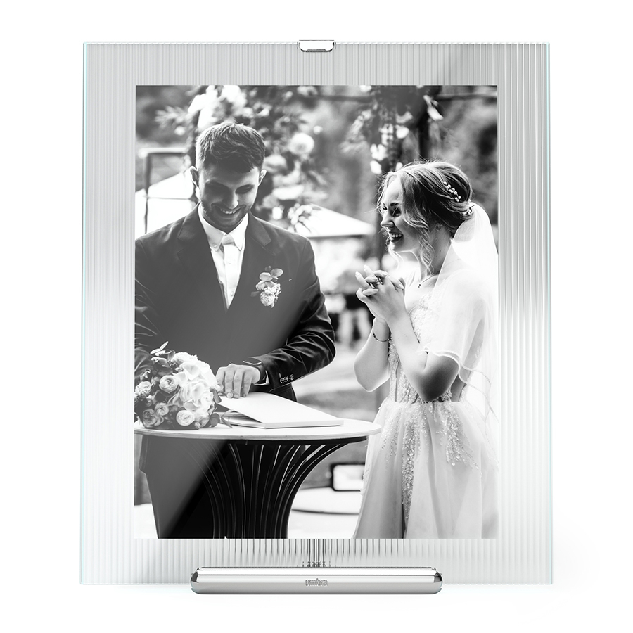 Фоторамка Flute превращает обычную фотографию в художественное произведение. Ребристая текстура стекла создает эффект легкой воздушности.Полированный металл добавляет благородного сияния, придавая изображению глубину и утонченность.