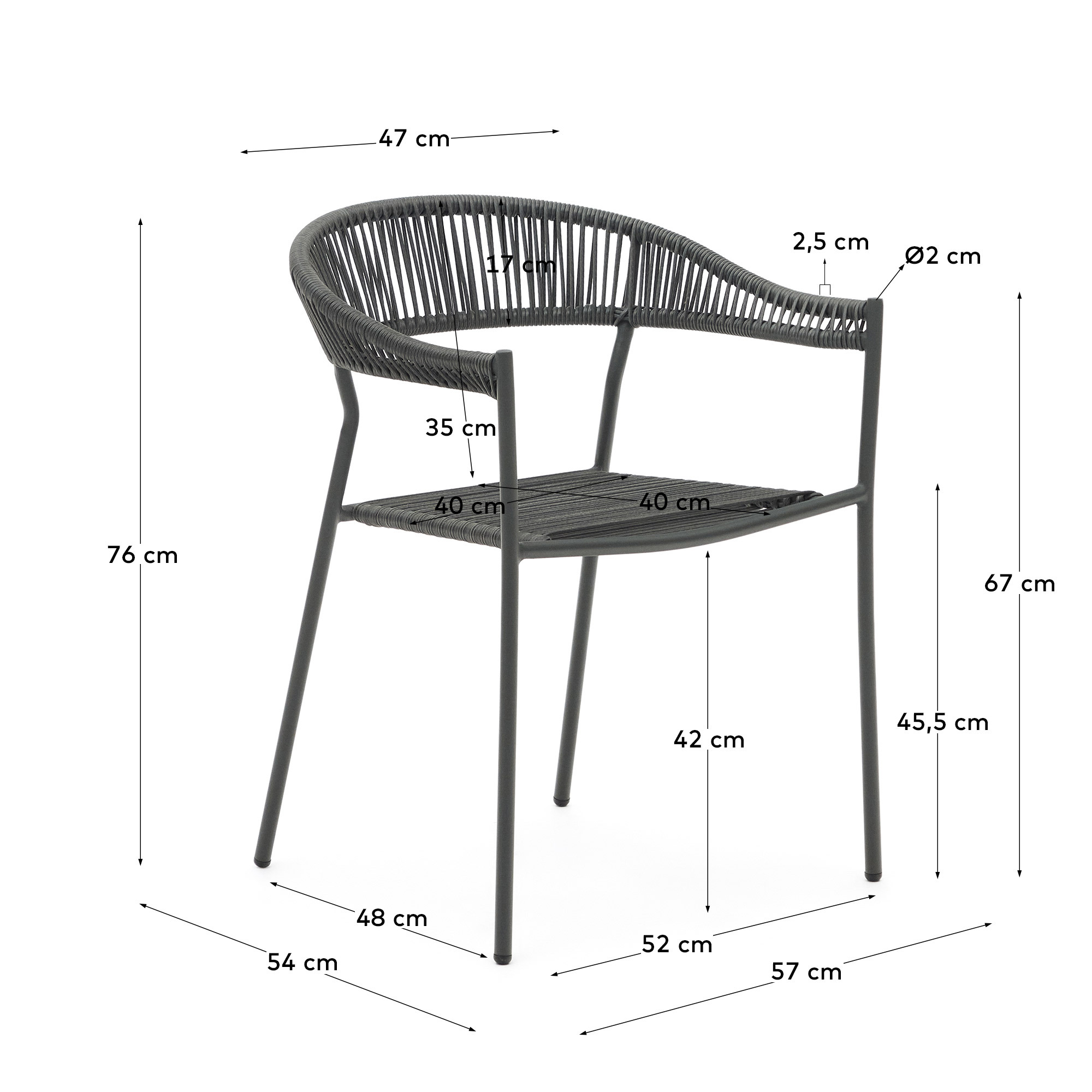 Садовый стул Futadera состоит из металлического каркаса и плетеного сиденья.