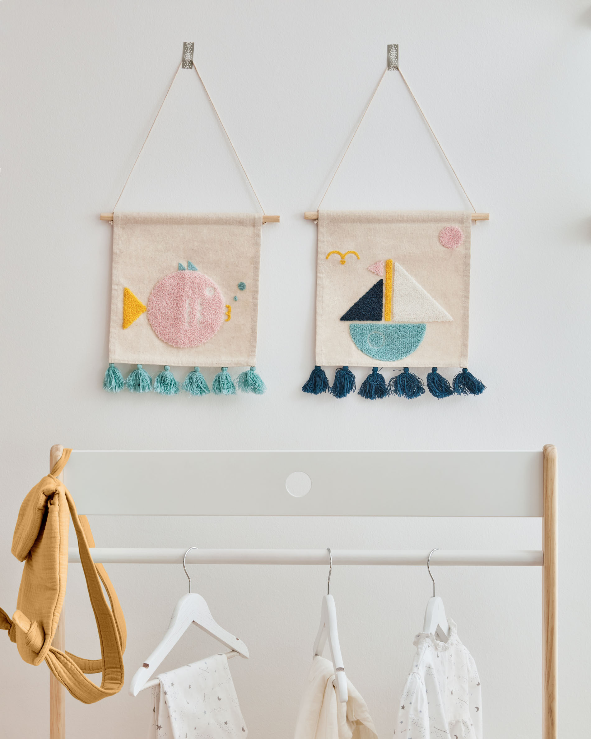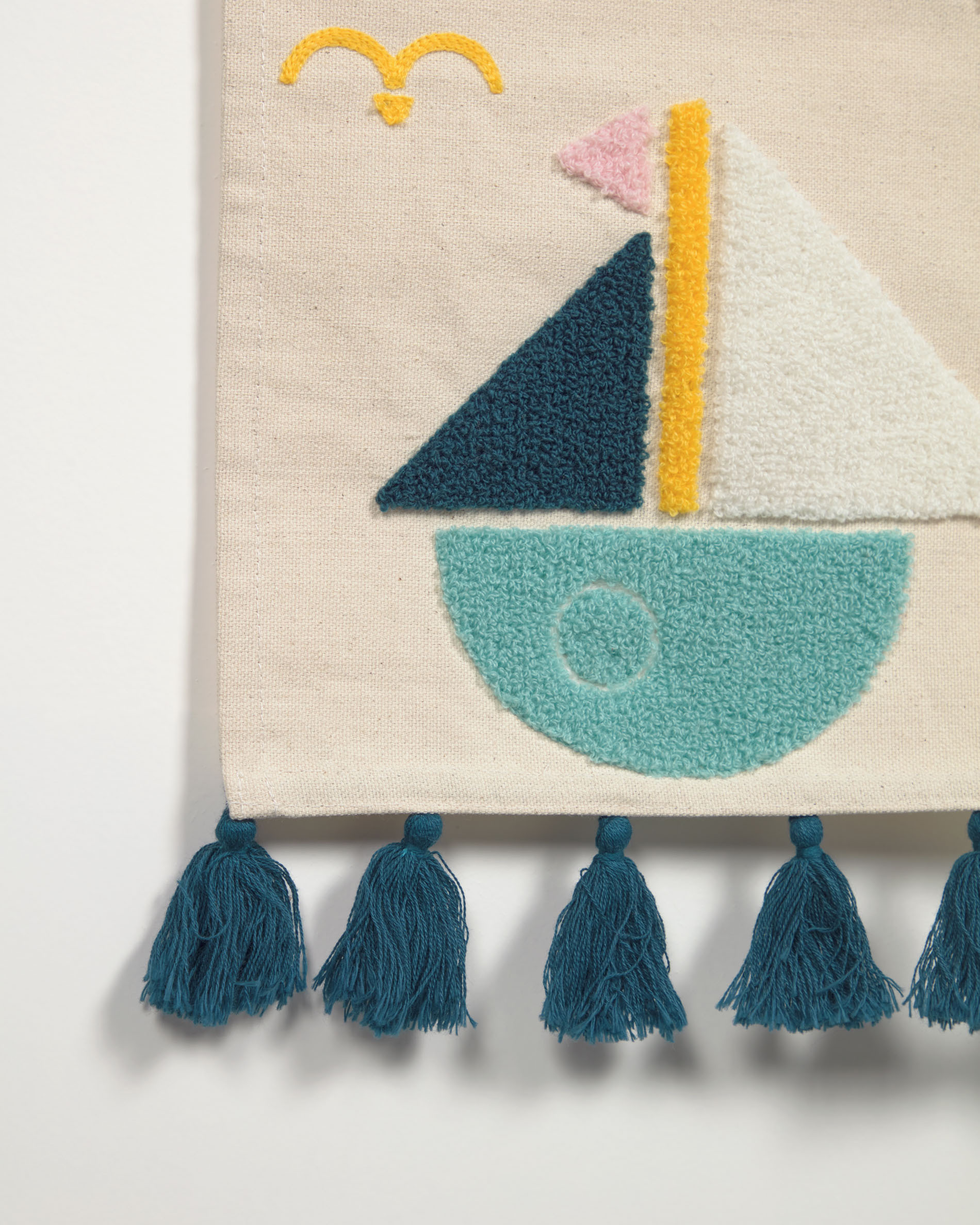 Гобелены отличаются несравненной мягкостью и простотой в уходе. Гобелены представлены двух видов – с изображением рыбки и кораблика. Рисунки набивные, из ниток смесового состава (50% – хлопок, 50% – акрил).