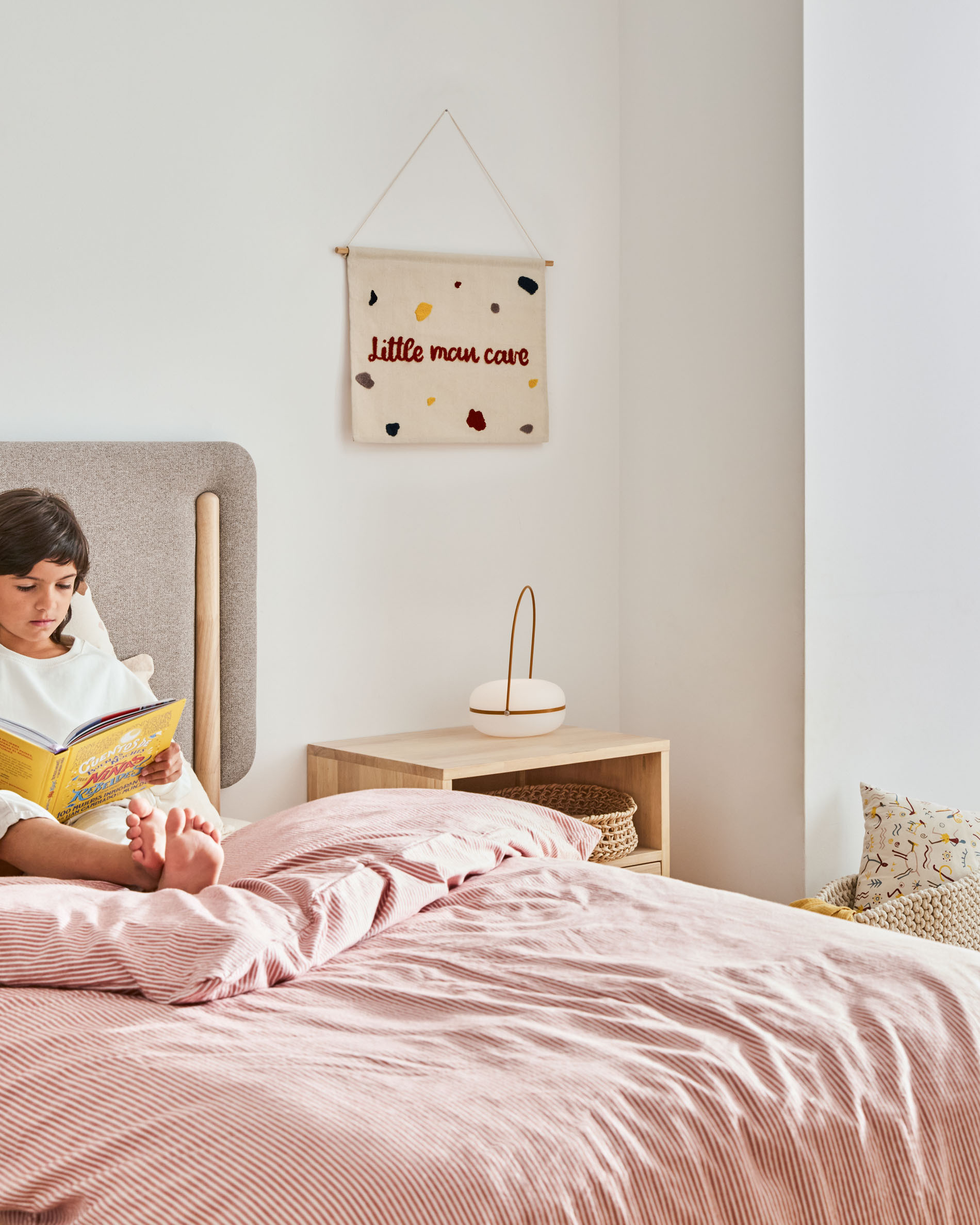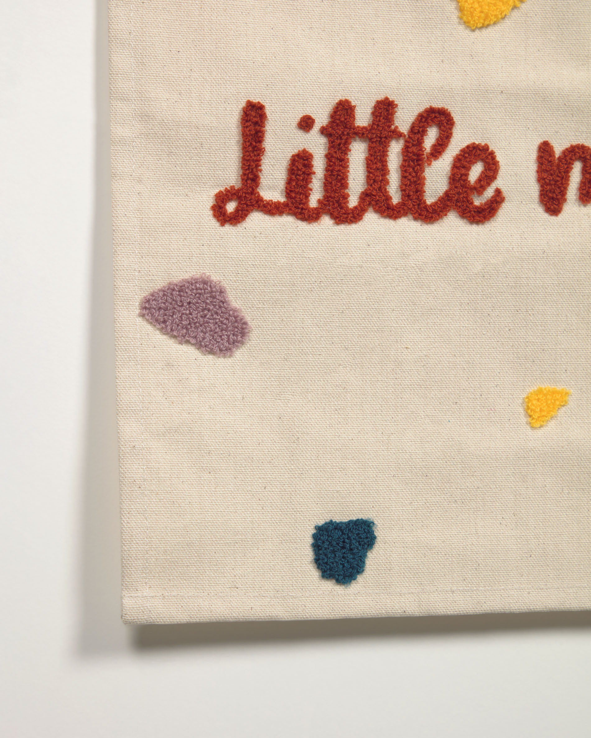 Гобелен Nerta сделан для того, чтобы украсить стену в детской комнате и подарить новые ощущения ребенку. Здесь хлопок имеет различные текстуры, которые приятны на ощупь. А яркие цвета будут вдохновлять на творчество.