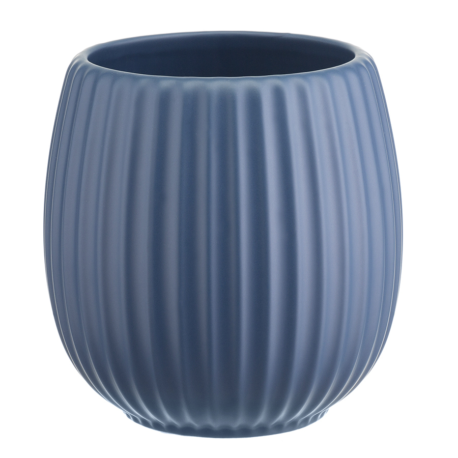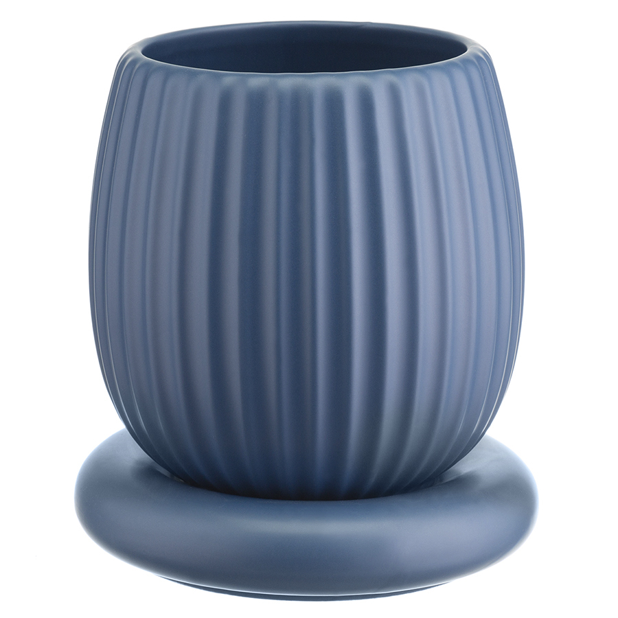 Горшок цветочный темно-синего цвета из коллекции Edge хорошо подойдет для небольших комнатных растений и поможет привнести природу в дом. Изделие простой округлой формы с фактурными гранями отлично сочетается со свечами и вазами из этой же коллекции, позволяя создавать интересные интерьерные композиции. Горшок выполнен из доломита, устойчивого к сколам, легкого и экологически чистого материала, снаружи и внутри покрыт матовой глазурью, имеет дренажное отверстие в нижней части. Подстановочная тарелка входит в комплект поставки.