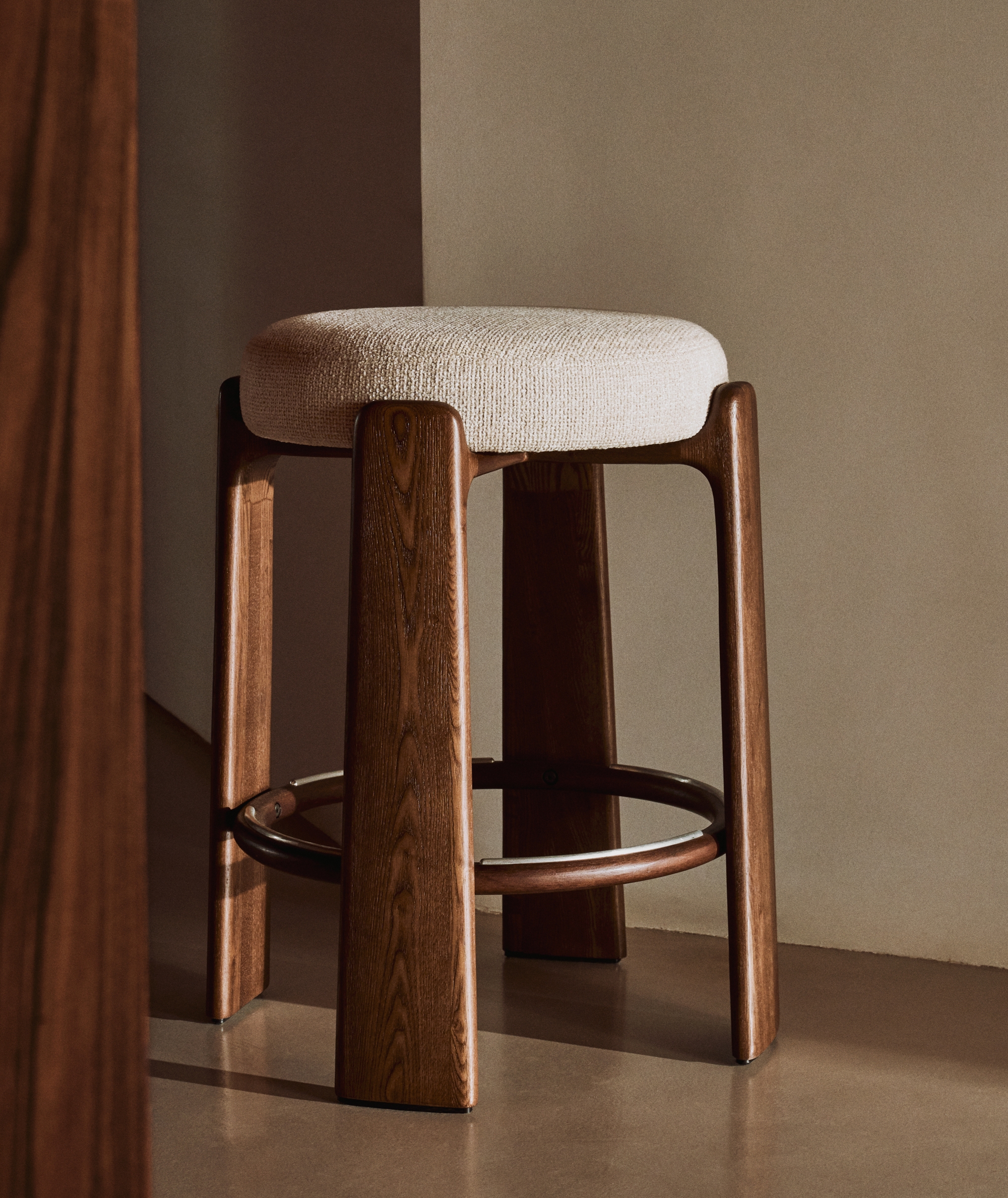 Granite — это табурет, который передает вечную элегантность, вдохновленный скандинавским дизайном 70-х годов и переосмысленный с помощью толстых, гладких форм. Каждая деталь была тщательно продумана, чтобы предложить эксклюзивный, функциональный и долговечный предмет, как для домашнего, так и для коммерческого использования. Сиденье обито двухцветной шениллой, изготовленной из крупноструктурированного переработанного полиэстера, который обеспечивает мягкую, но прочную текстуру. Ткань изготовлена из переработанного материала от сертифицированного поставщика Global Recycled Standard