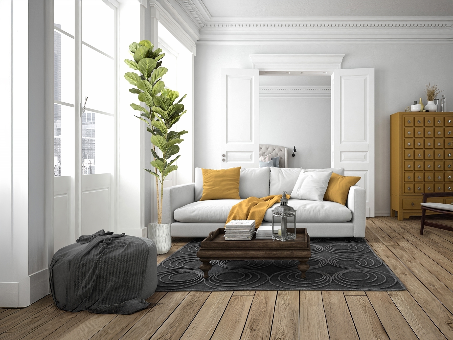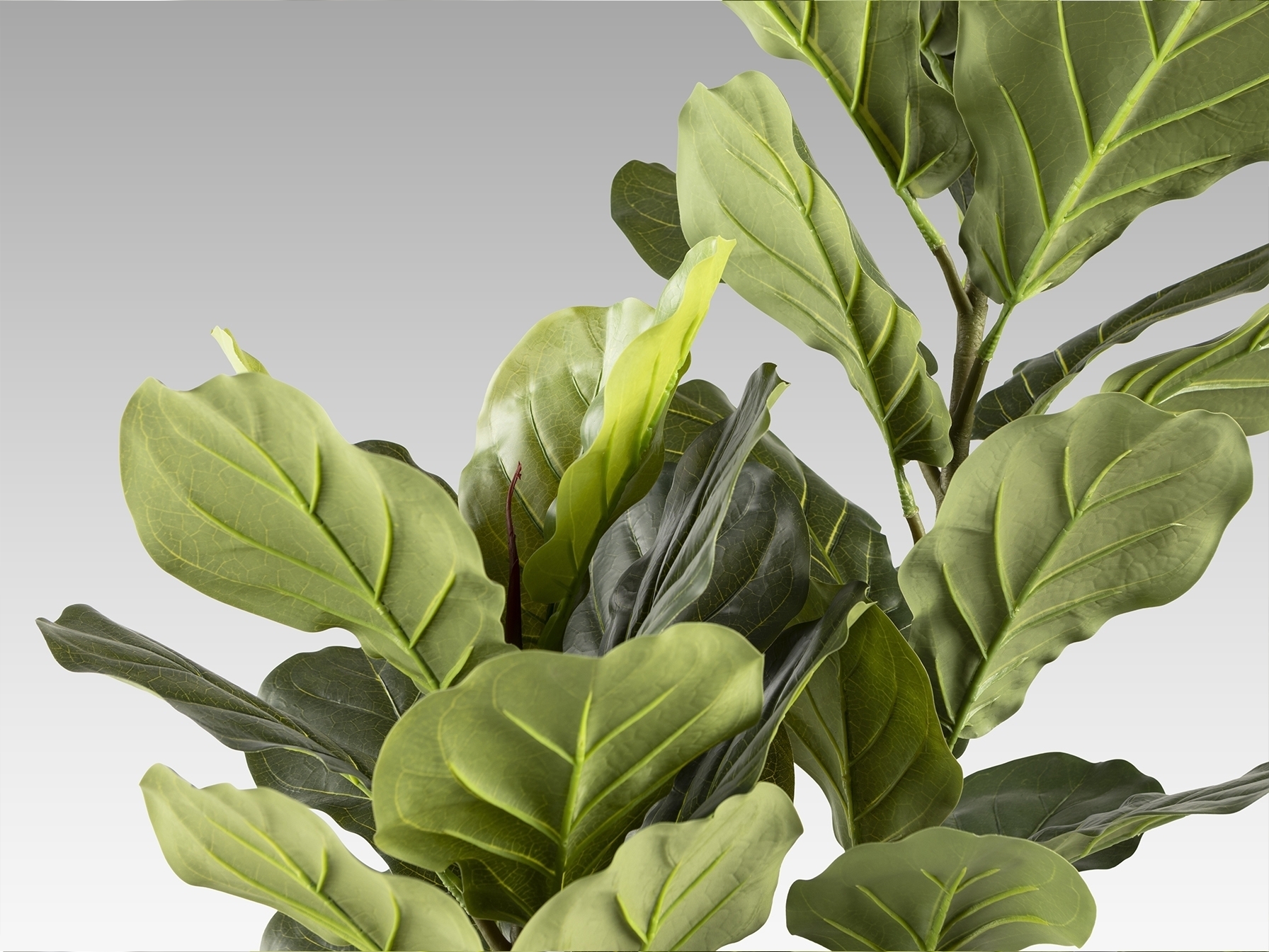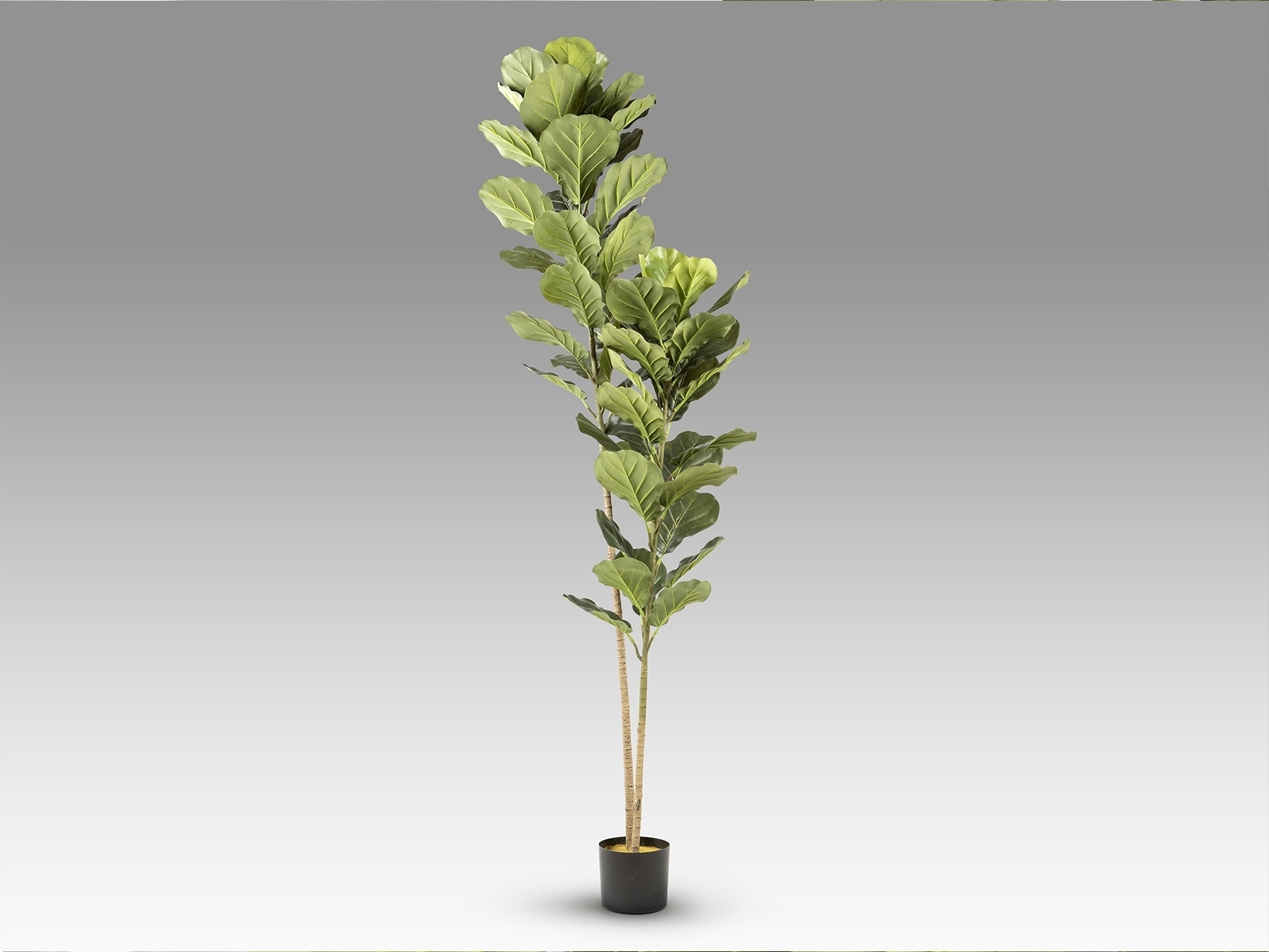 Фикус лировидный (фикус скрипичный), искусственное растение из ПВХ и металла. В комплекте цементное основание с искусственным мхом и горшок (Ø17 x 15 см).