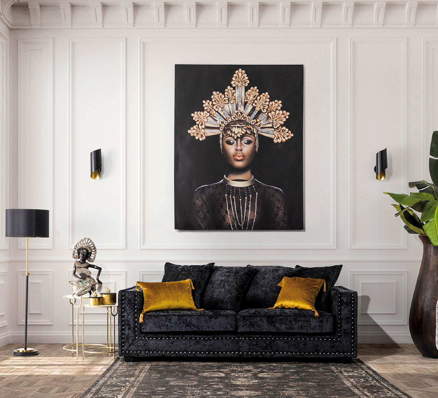 Канва NIURKA, ручная работа черно-золотая, восточный стиль. Изготовлен из холста в сочетании с древесиной сосны.