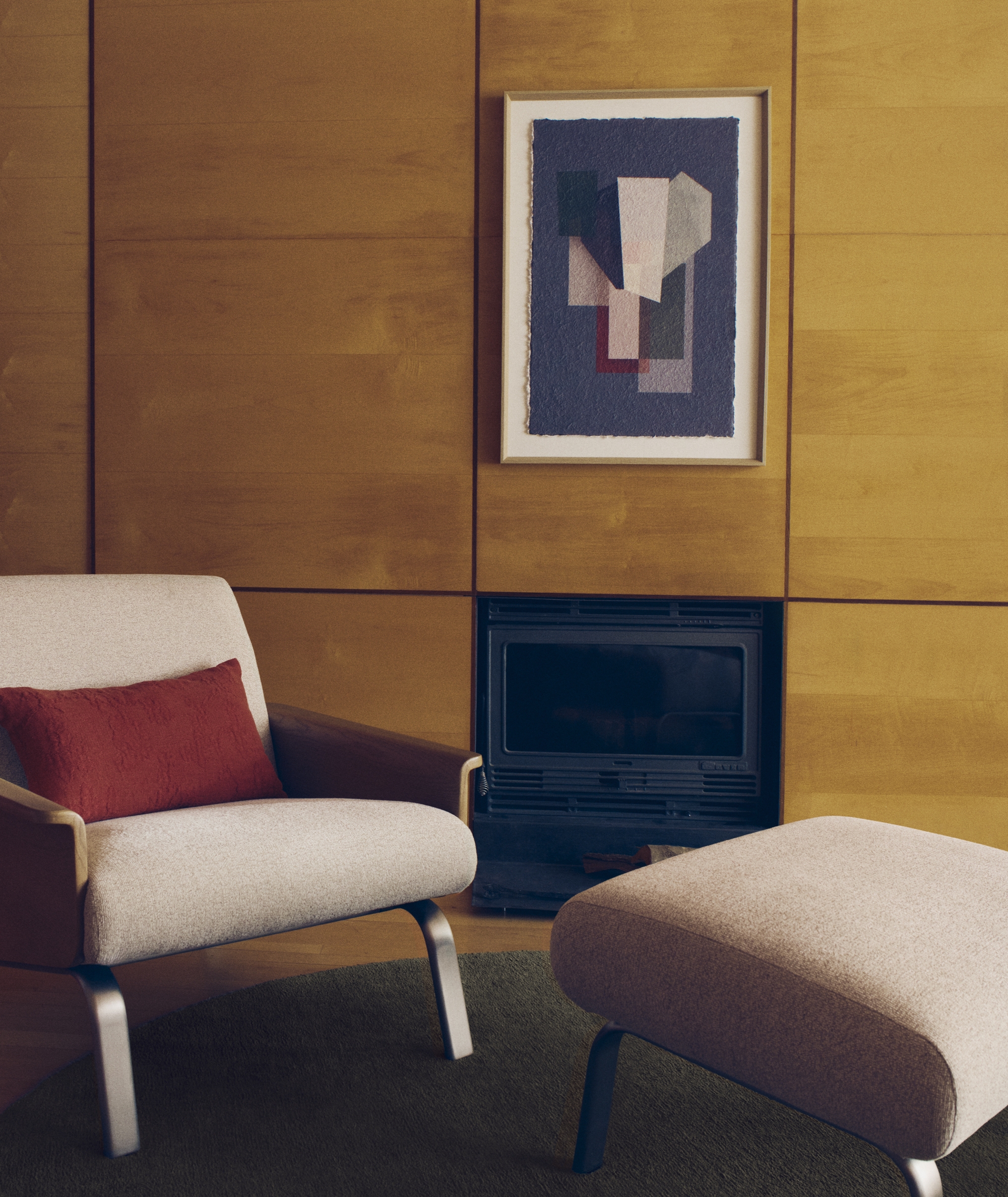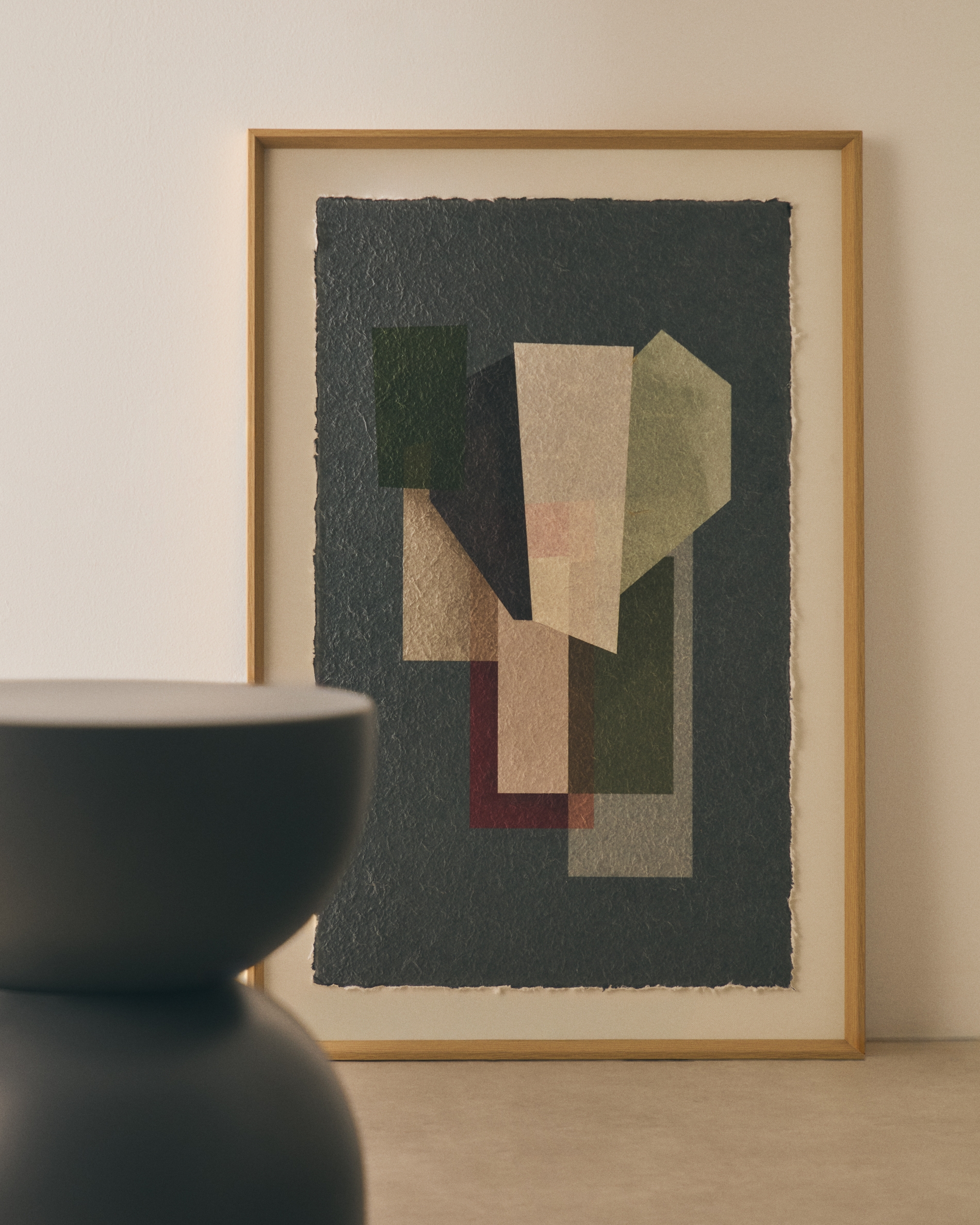 Эта картина вдохновлена кубизмом и архитектурой середины века. Она привносит глубину и индивидуальность в любое пространство благодаря сочетанию геометрических фигур и палитры серых и бордовых тонов. В этом дизайне архитектура деконструируется и синтезируется, чтобы отразить её в уникальном художественном произведении, где наложение плоскостей и игра прозрачности создают визуальный эффект, побуждающий к созерцанию и добавляющий нотку современной изысканности.