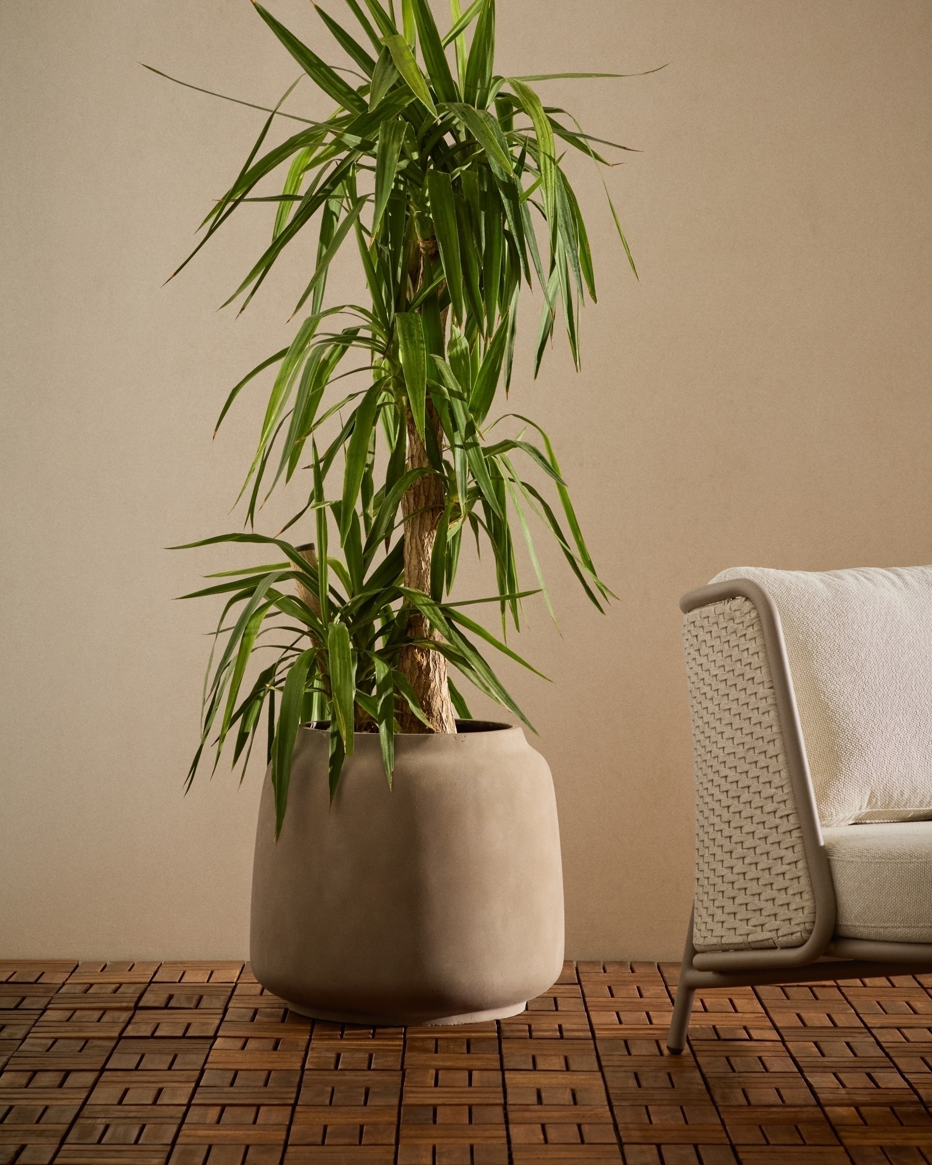 Компактная и прочная кашпо Lira имеет слегка изогнутую форму, которая создаёт ощущение стабильности и современности. Изготовленное из полицемента, оно долговечно и идеально подходит для небольших уголков или растений среднего размера. Благодаря сдержанному дизайну его легко сочетать с любым стилем интерьера, от минималистичного до деревенского.
