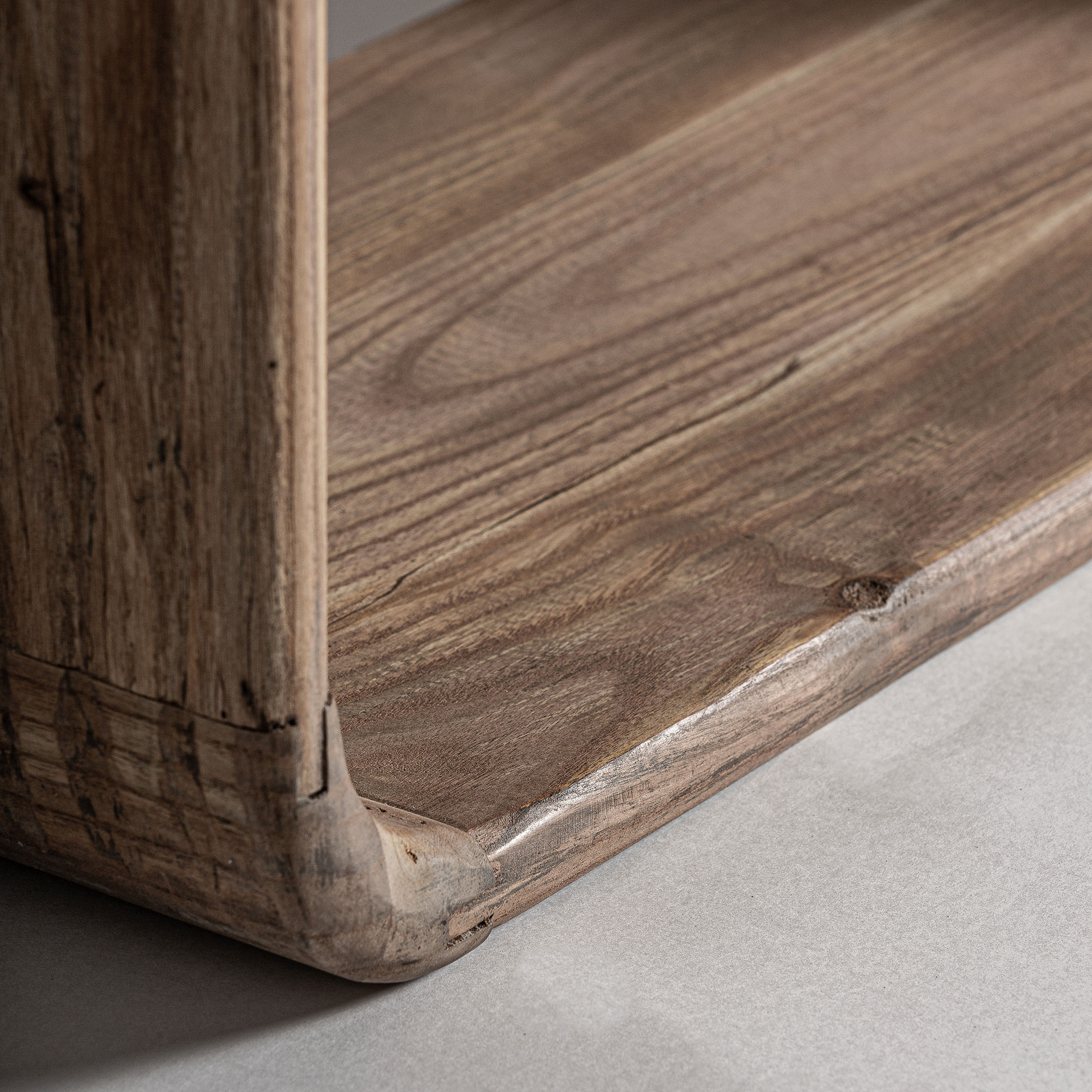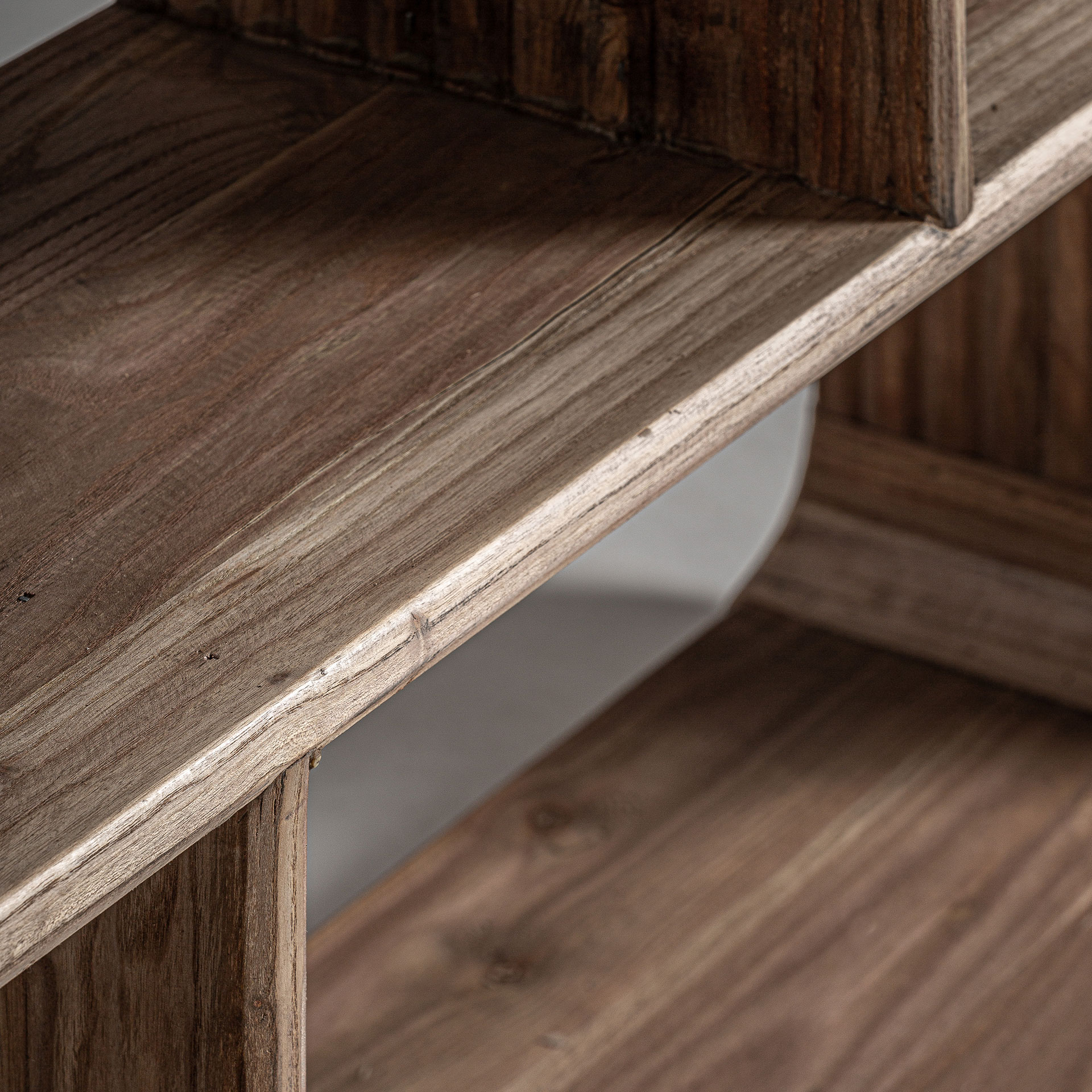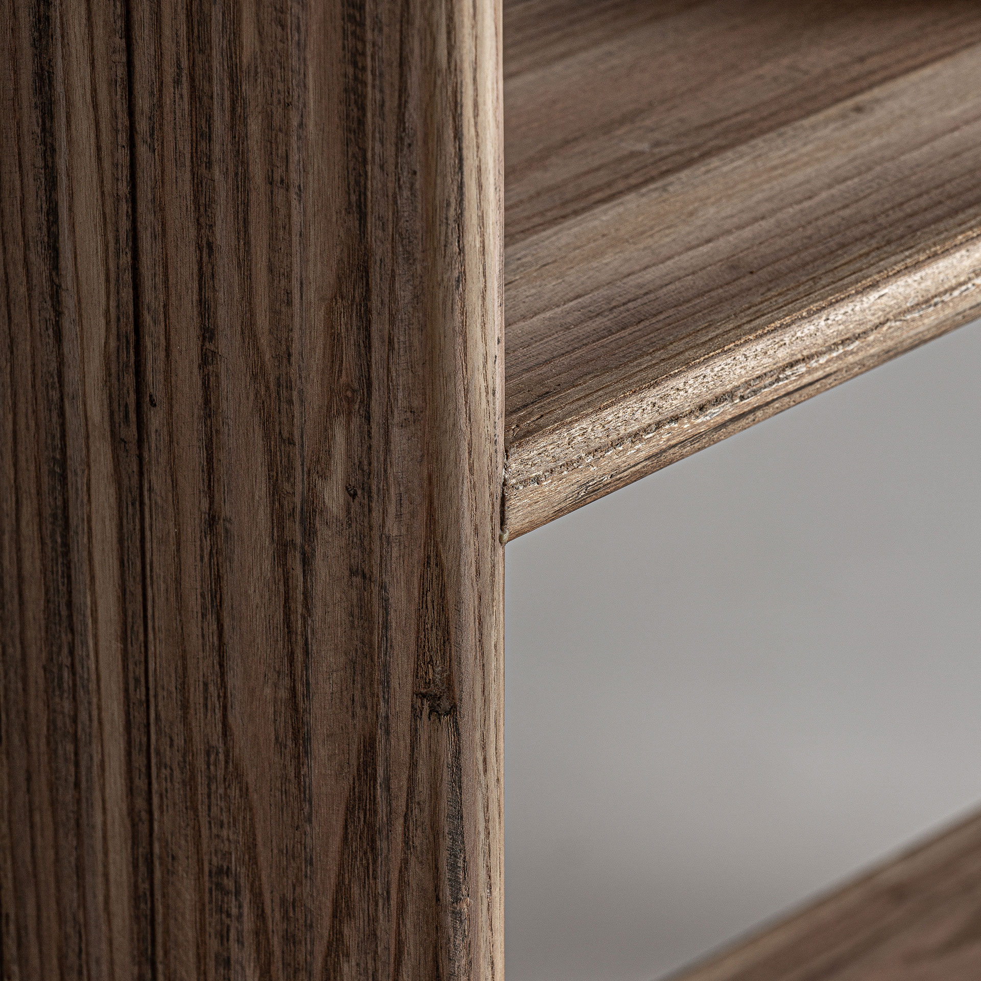 Книжный шкаф Gloucester в колониальном стиле, изготовлен из переработанной древесины вяза светло-коричневого цвета.