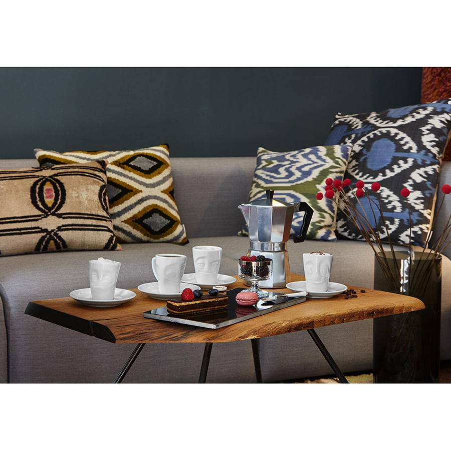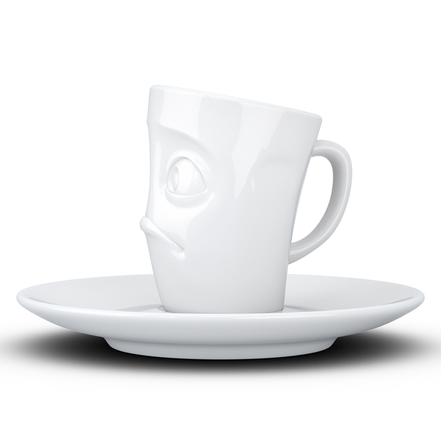 Кофейная пара из оригинальной чашки и блюдца отлично подойдет для подачи эспрессо.