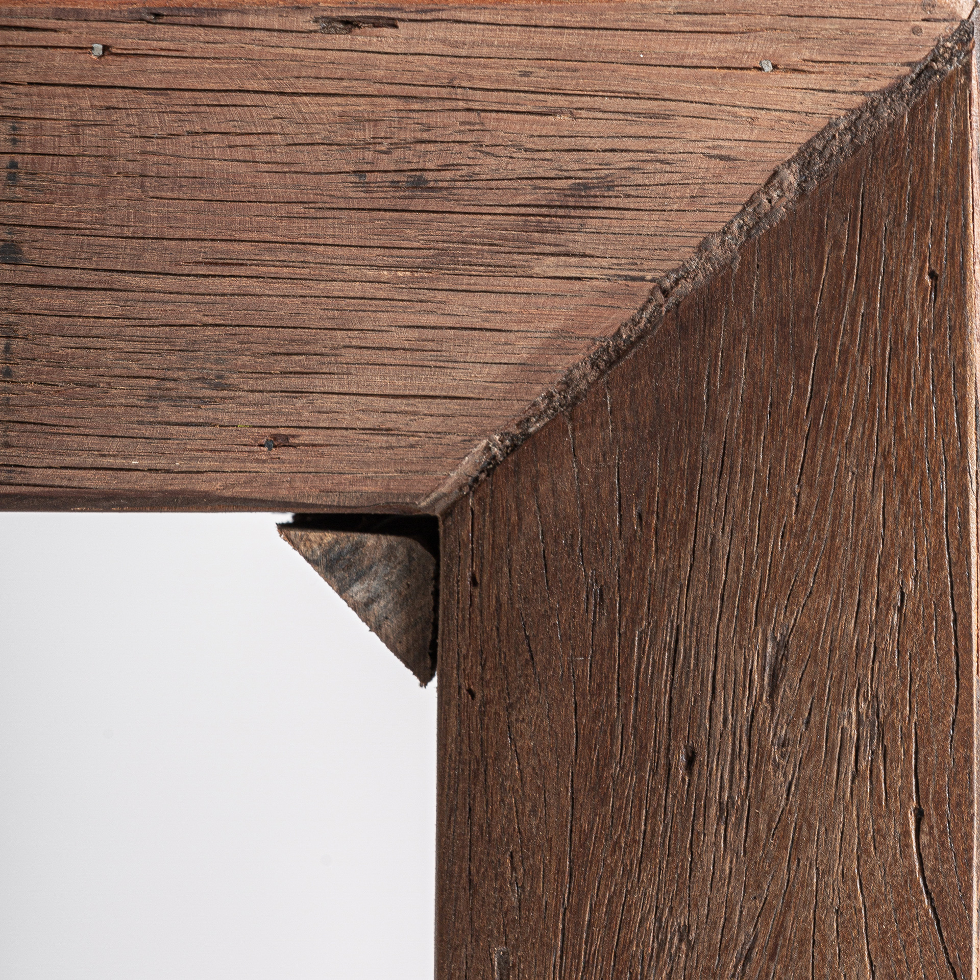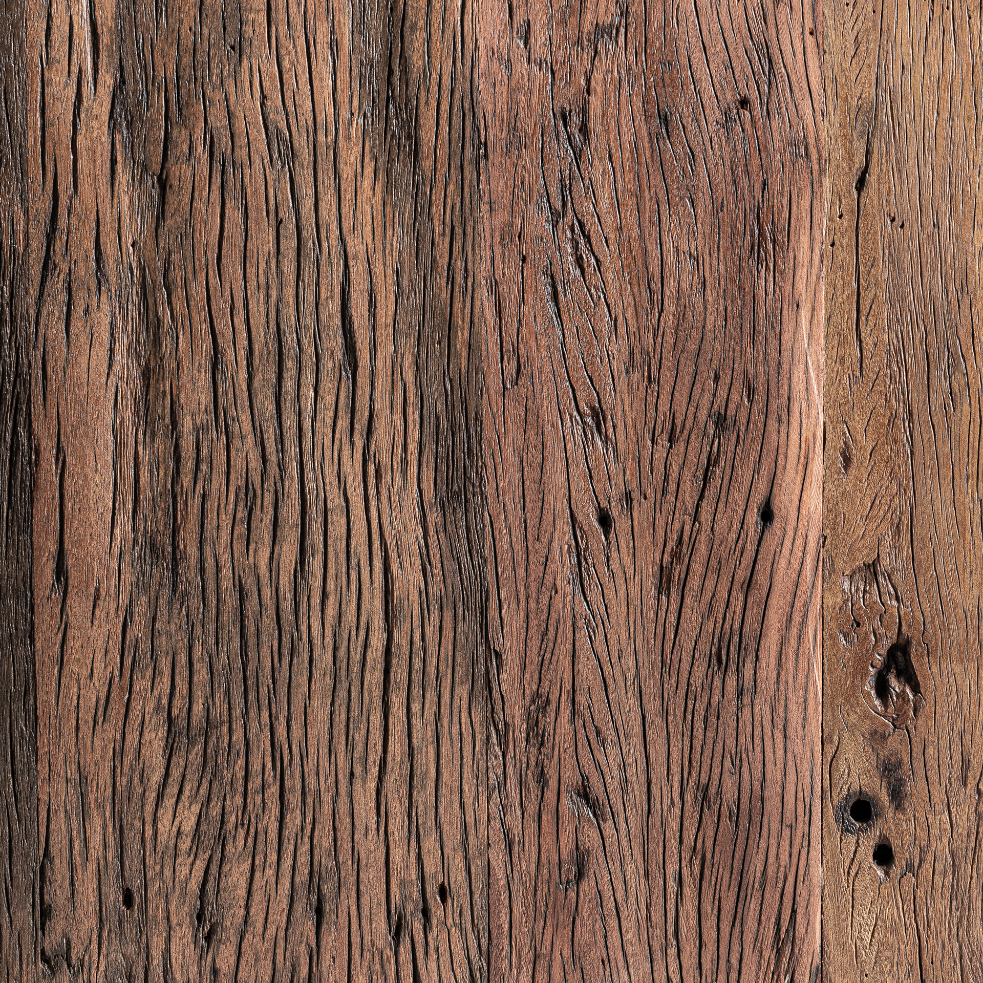 Кофейный столик, изготовленный из переработанной древесины коричневого цвета.