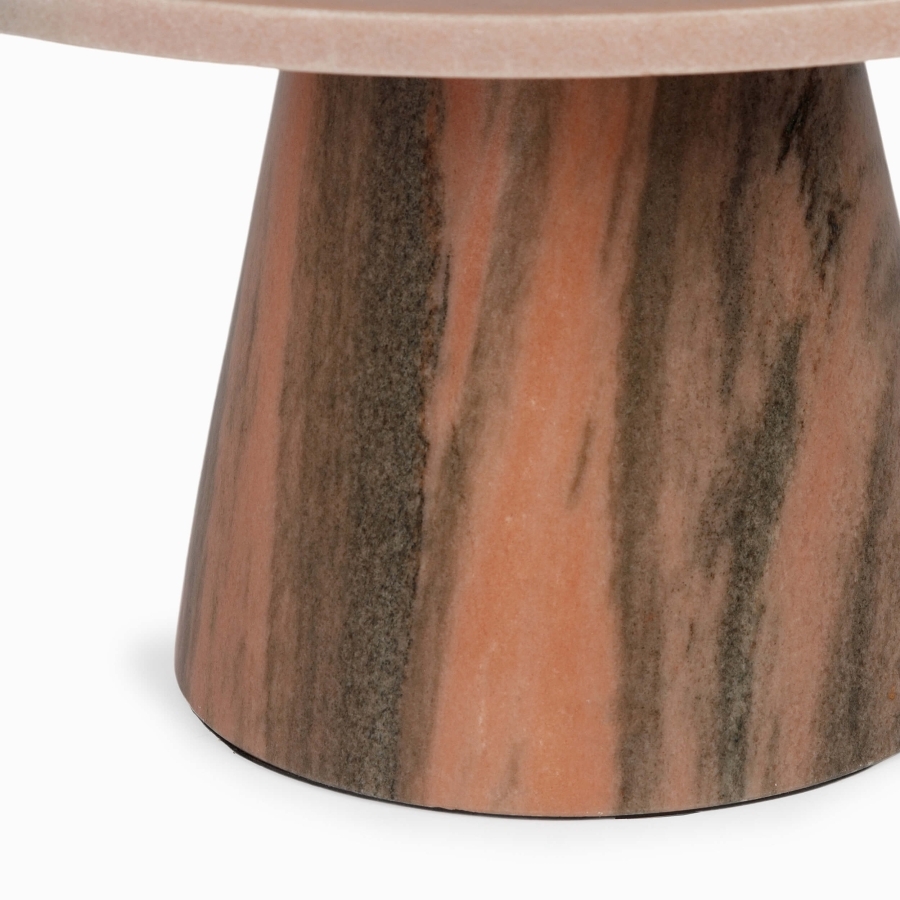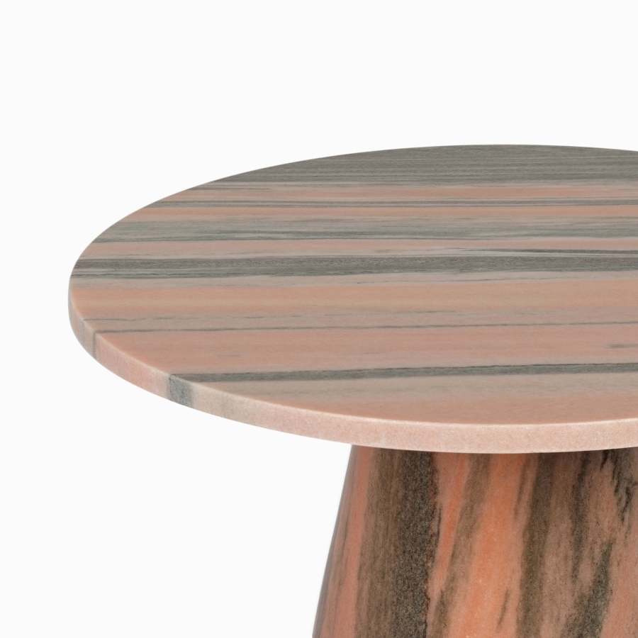 Этот стол выполнен из розового индийского мрамора, известного своей уникальной текстурой и роскошным видом.