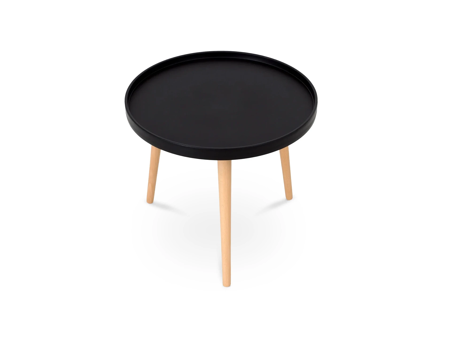 Кофейный столик Kid. Небольшой круглый столик высотой 45 см. Диаметр столешницы - 50 см, материал – полипропилен. По краю стола сделан аккуратный бортик - можно не бояться что-то пролить. Ножки из натурального бука обеспечивают устойчивость и легкость. Наличие подпятников предохраняющих от царапания пола. Представлен в черном и белом цвете.