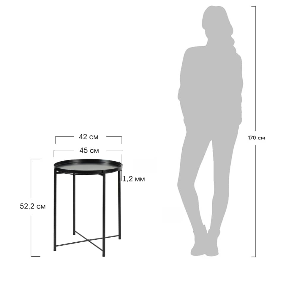 Кофейные столики стали неотъемлемой частью современного интерьера, и дело не только в их функциональности. Кофейный столик Moon станет настоящим дополнением к интерьеру в современном стиле. Металлический столик модного черного цвета имеет прочную конструкцию, но при этом выглядит невесомым и легким. Верхнюю часть столика легко снять и использовать в качестве подноса. Изделие Moon – отличный выбор для смелых дизайнерских решений. Диаметр верхней крышки 45см, высота столика 51см.